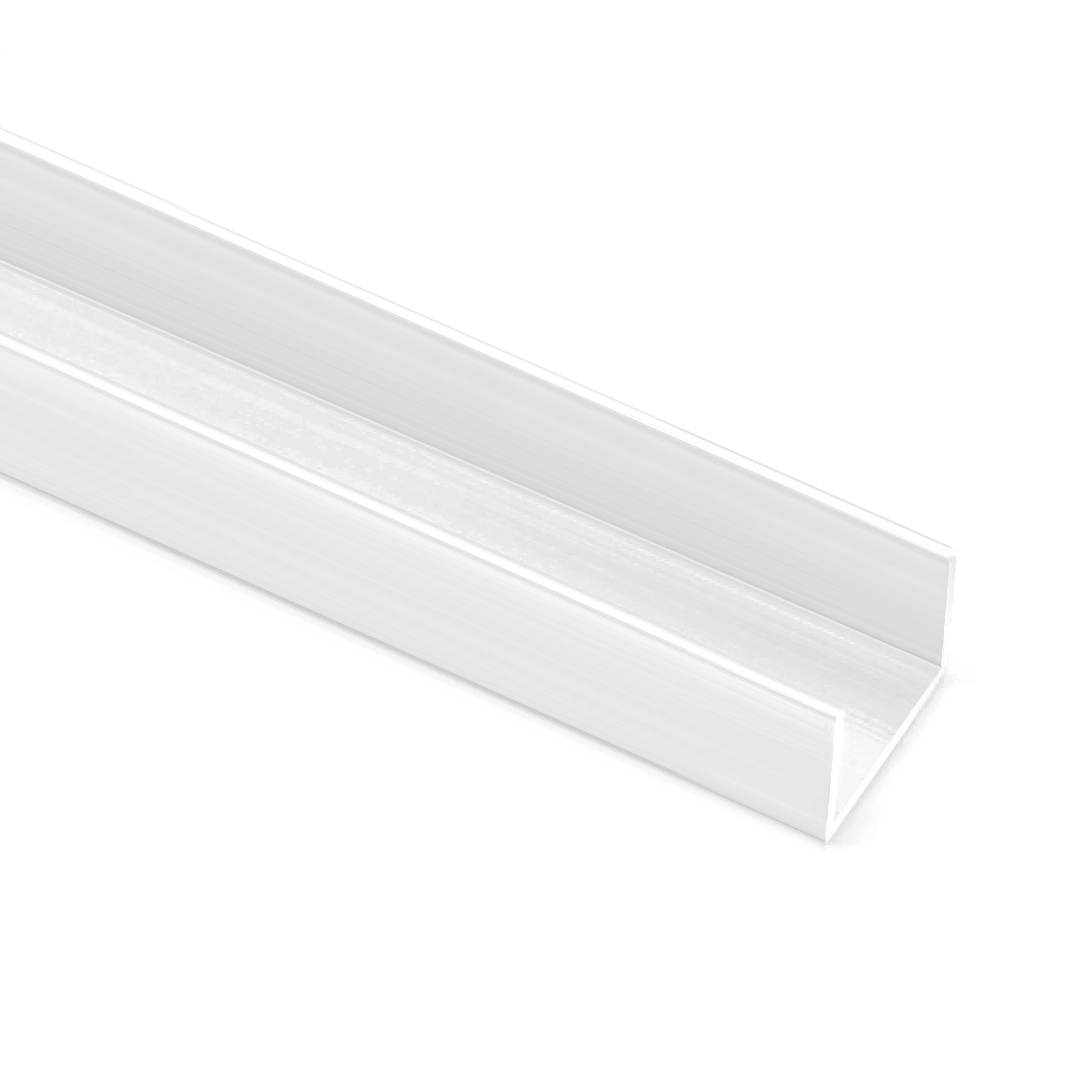 Fabricado en aluminio de alta calidad con una longitud de 260cm que permite rematar las composiciones decorativas que se quiera o necesite para una puerta corredera de armario en su parte inferior y superior. Con una endidura de 16mm permite la utilizaciones de tableros o paneles de hasta esa medida, pudiendo ser inferiores si se complementa con un burlete para su sujección (No incluido). Es recortable en longitud con la herramienta propia de corte de aluminio.