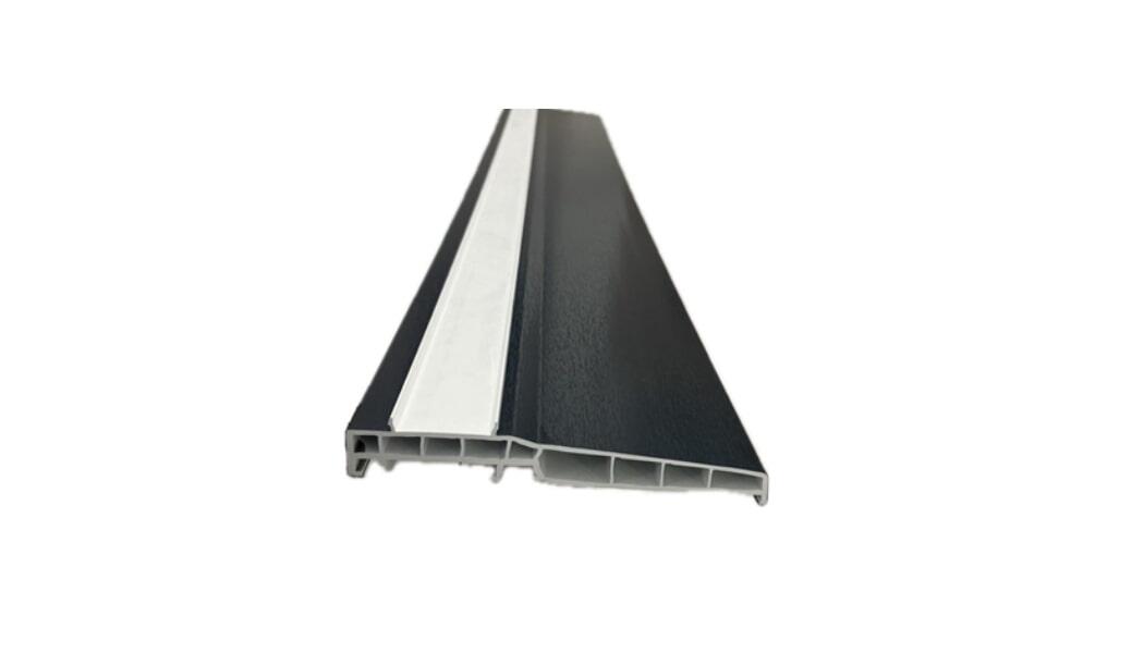 Perfil de PVC grafito, que se instala en la parte inferior de la ventana con un grado de inclinación adecuado para ayudar a evacuar el agua de lluvia que puede caer sobre la ventana y evitar la filtración hacia la vivienda, en los muros que rodean la ventana