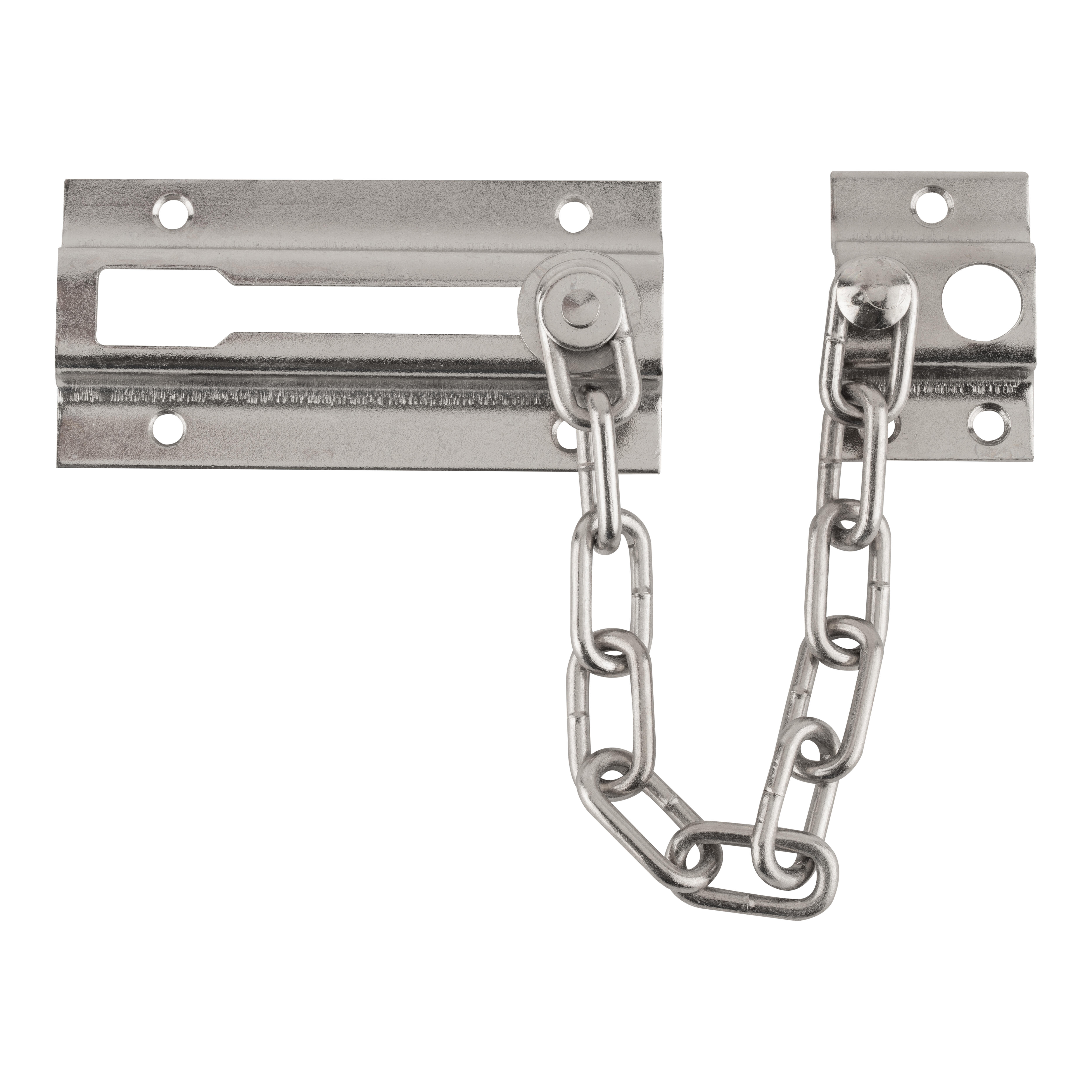 Pestillo cadena de seguridad para puerta. Acabado: niquelado. Realizada en Hierro. 40 mm