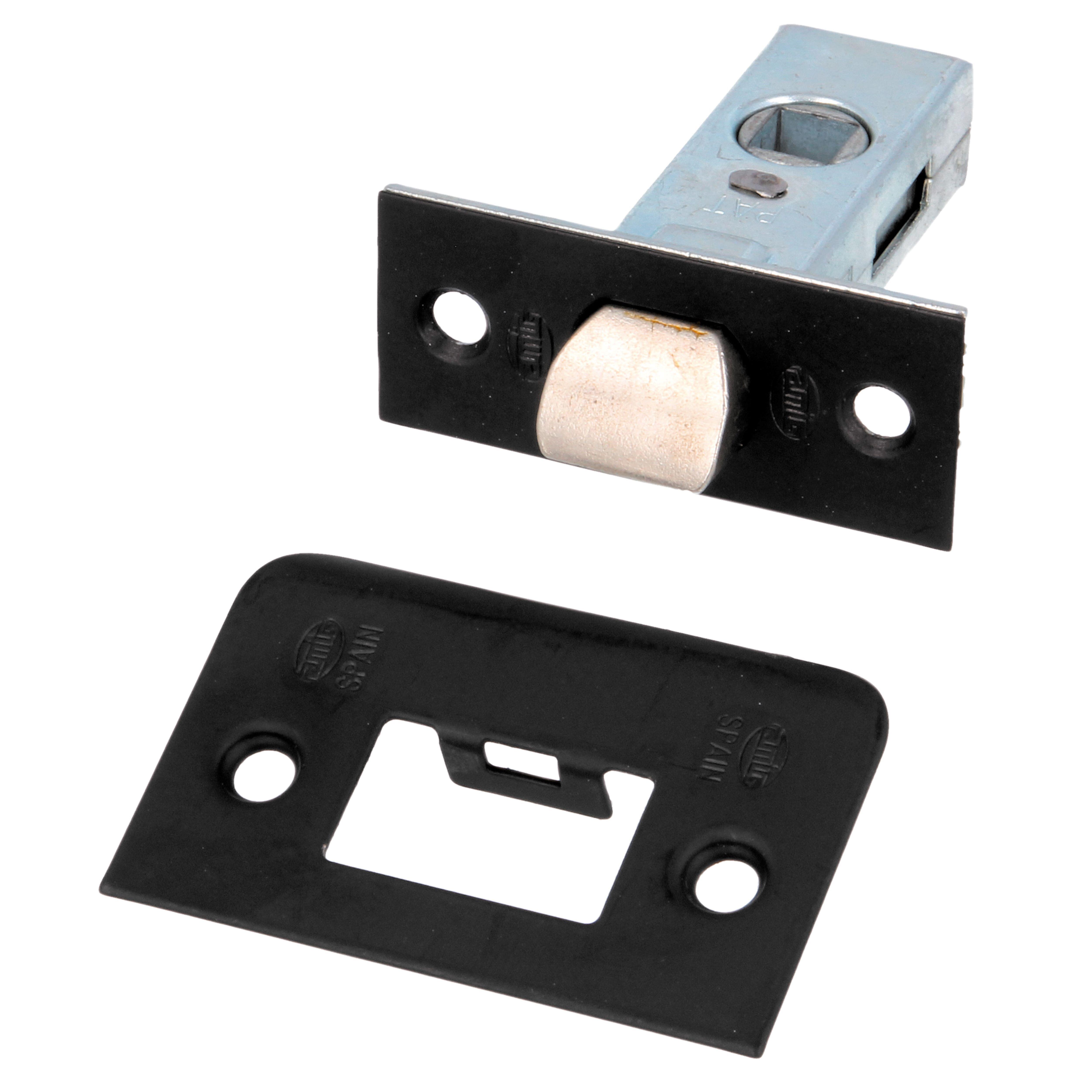 Picaporte tubular con canto recto de 45 mm realizado en acero y acabado en negro. Soporte de 57 mm