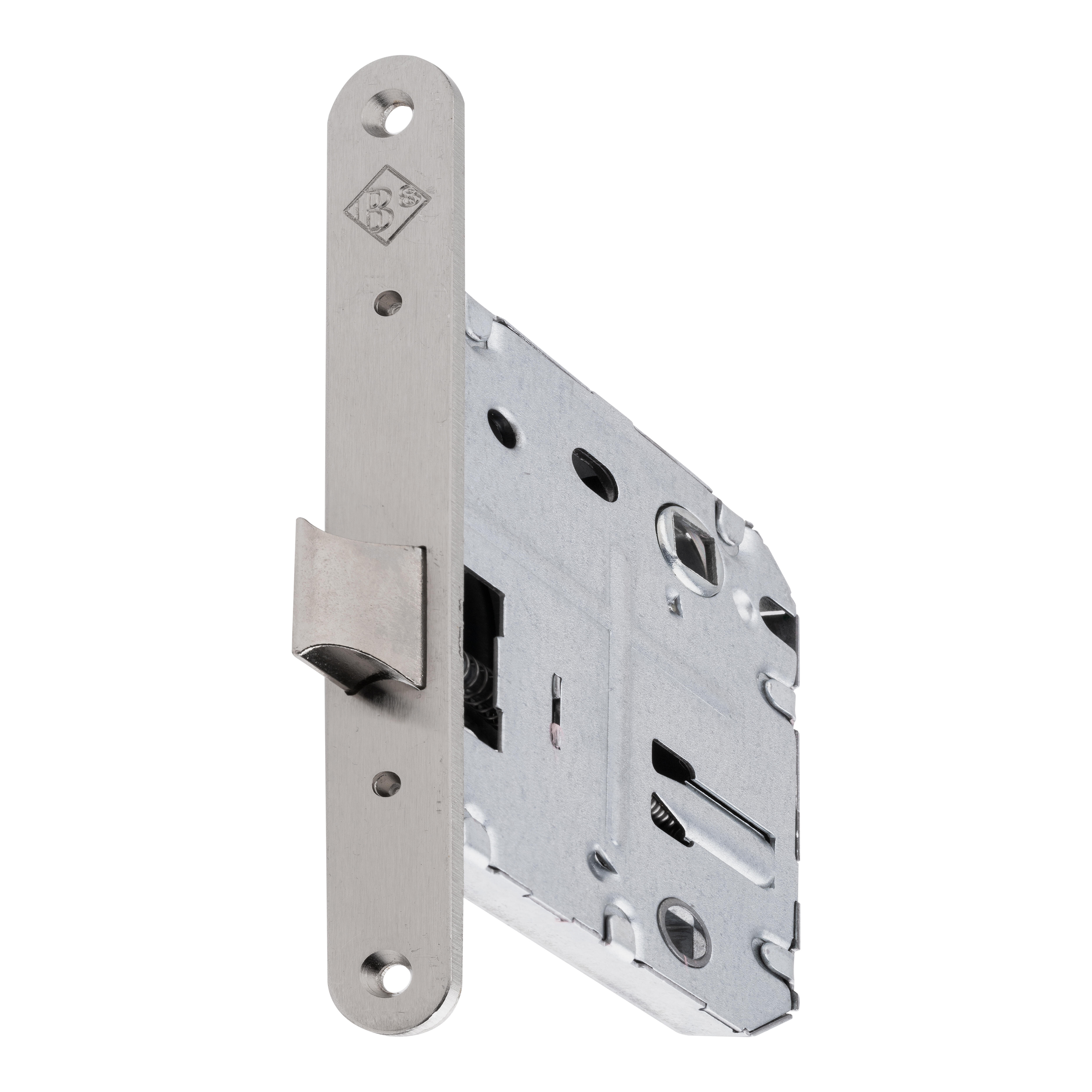 Picaporte unificado modelo 270. Distancia 70 mm Entrada 50 mm. Canto redondo. Reversible. Acabado niquelado