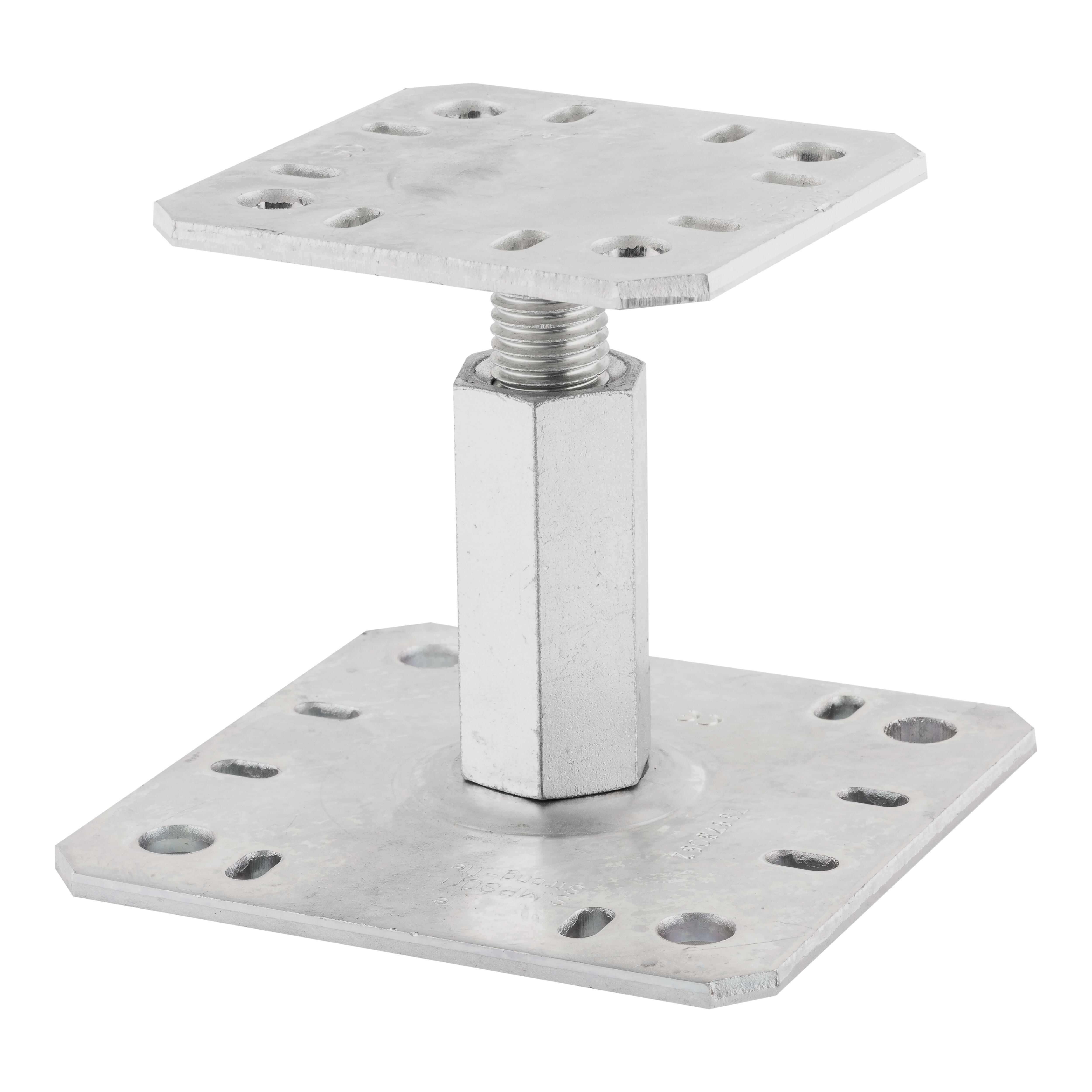 Pilar de pie regulable tipo C de 5 mm de espesor. Aplicación para pilares de tejadillos, pérgolas, verandas Sección máxima del pilar: 200 x 200 mm No requieren ningún tipo de mecanizado. Los pies de pilar PPRC pueden ajustarse tras su montaje