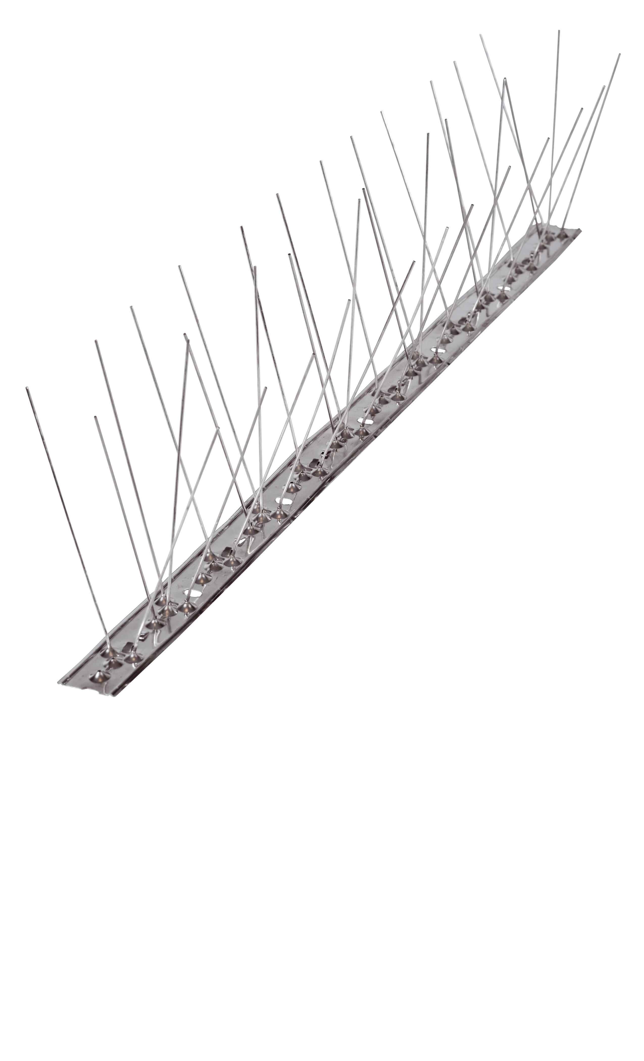 Sistema disuasión de pájaros. Varilla/pincho anti aves realizada en acero inoxidable AISI 304. Se compone de 80 púas realizadas en alambre de alta resistencia, de diámetro exterior de 1.3mm en acero inoxidable de calidad superior AISI-304/316 y otros. Las púas tienen una altura de 115 mm . Base flexible de acero inoxidable . Dimensiones 100 x 9.5 cm.