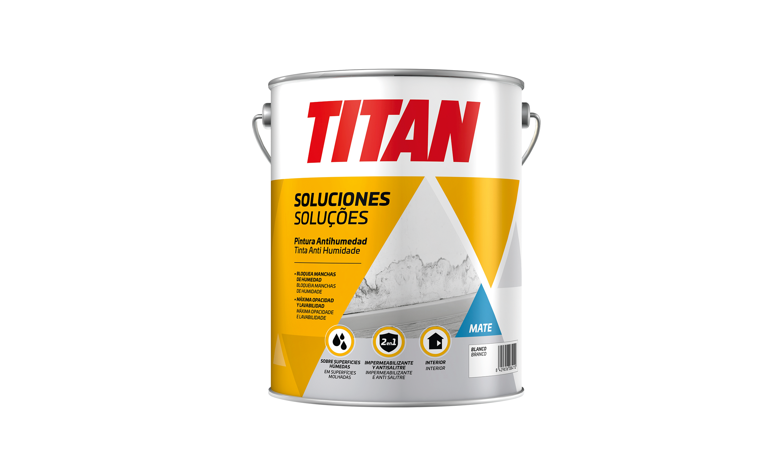 Bloquea y tapa las manchas de humedad con solo una mano de pintura evitando su reaparición. Rendimiento: 4-5 m2/l.