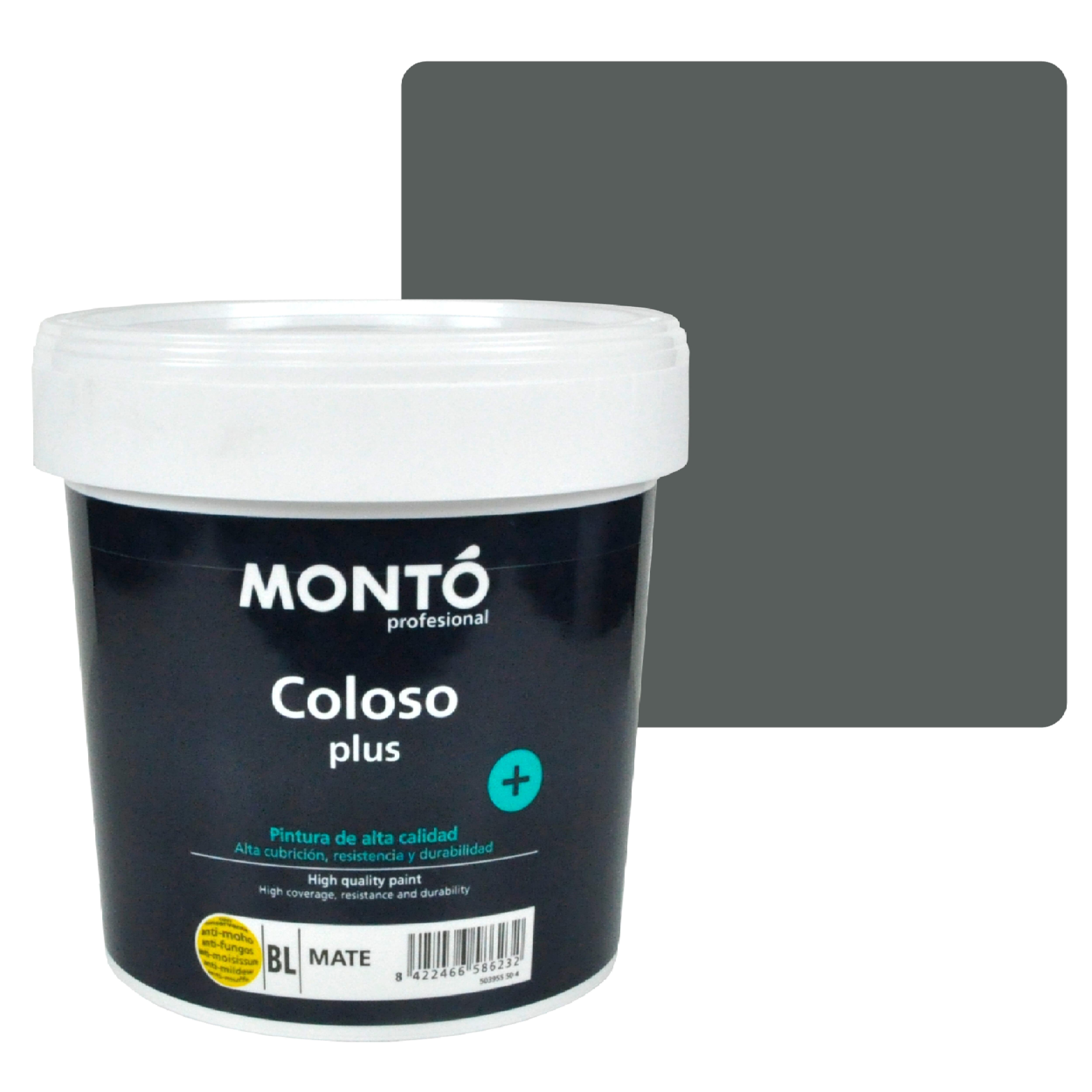 Pintura plástica antracita con acabado mate, de 2,5 litros Coloso. Uso interior y exterior. Rendimiento: 12-14m2/l. Para el pintado y decoración de paredes y techos.