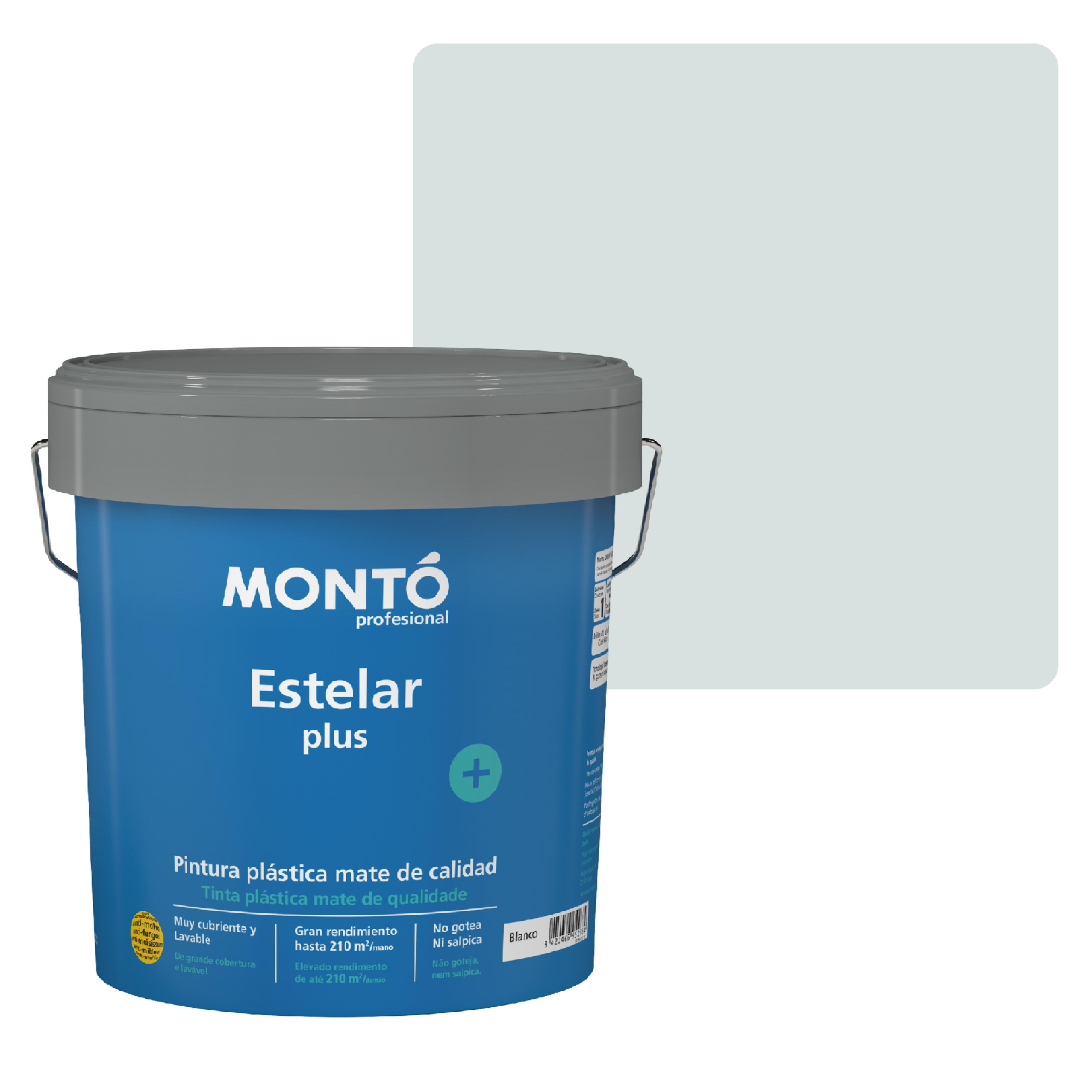 Pintura plástica gris perla con acabado mate, de 4 litros Estelar. Uso interior y exterior. Rendimiento: 9-11m2/l. Para el pintado y decoración de interiores en general. Puede usarse en exterior, sólo en climas benévolos.