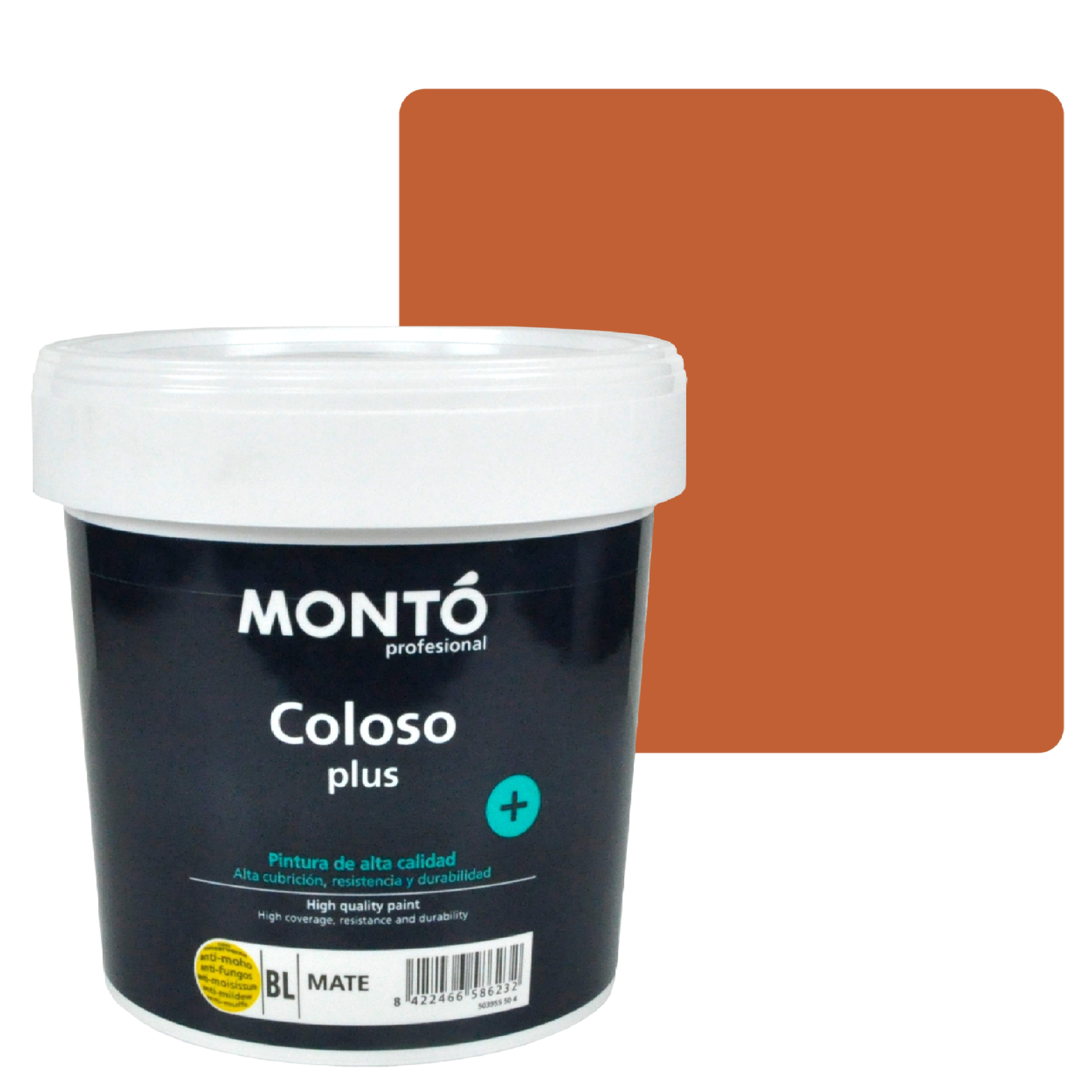 Pintura plástica ladrillo con acabado mate, de 2,5 litros Coloso. Uso interior y exterior. Rendimiento: 12-14m2/l. Para el pintado y decoración de paredes y techos.