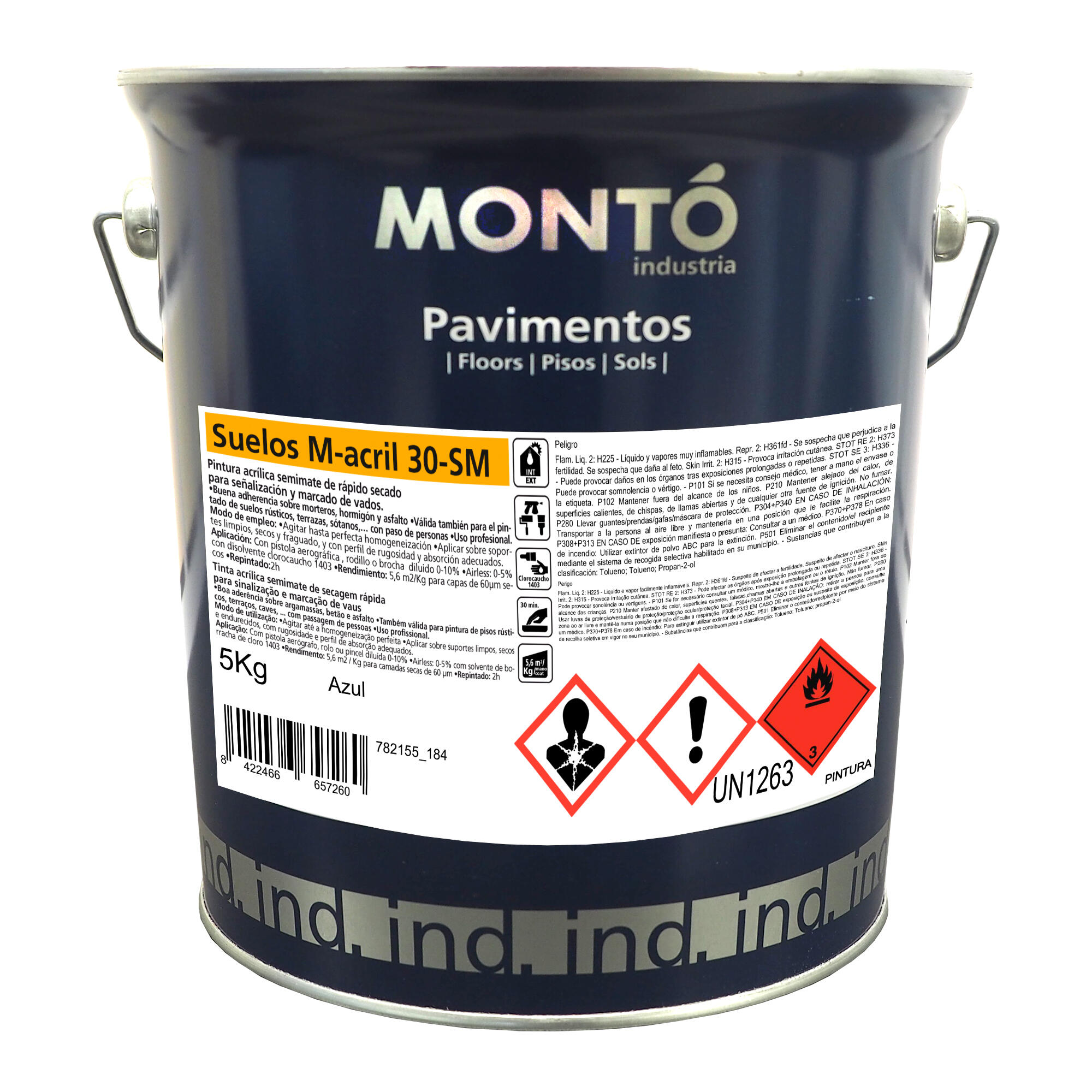 Pintura para pavimentos exterior e interior de alta calidad, a base de resinas acrílicas al disolvente, de secado muy rápido. De uso profesional. Para el pintado de suelos rústicos, sótanos, terrazas, etc... Para señalización en general y marcación de vados. Buena adherencia sobre mortero, hormigón y asfalto. Adecuada resistencia al pisado en suelos sometidos al paso de personas. Resistencia a la intemperie. Facilidad de repintado.