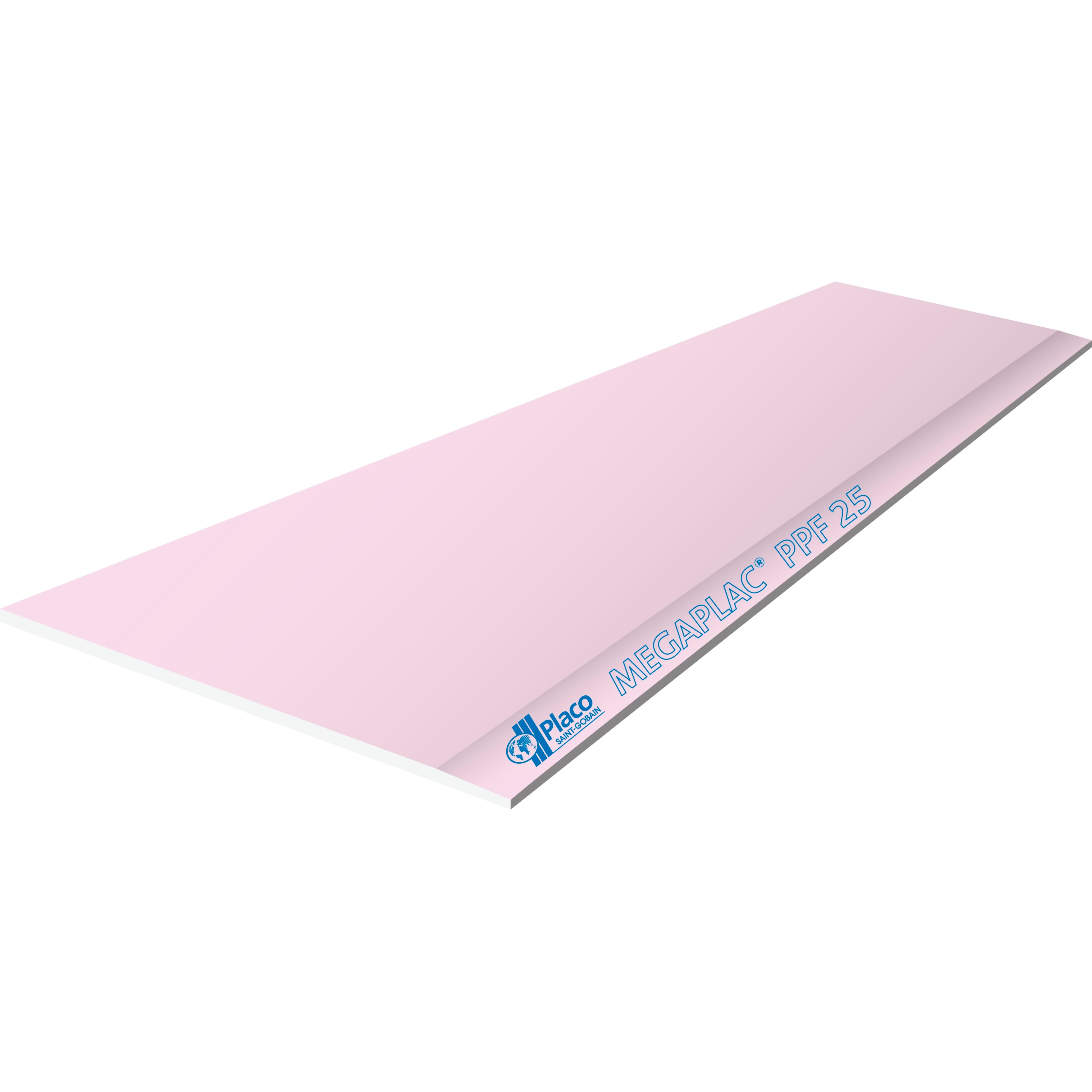 Placa de yeso laminado PPF 2000x900x25mm destinada a sistemas de obra seca en interiores en zonas húmedas.