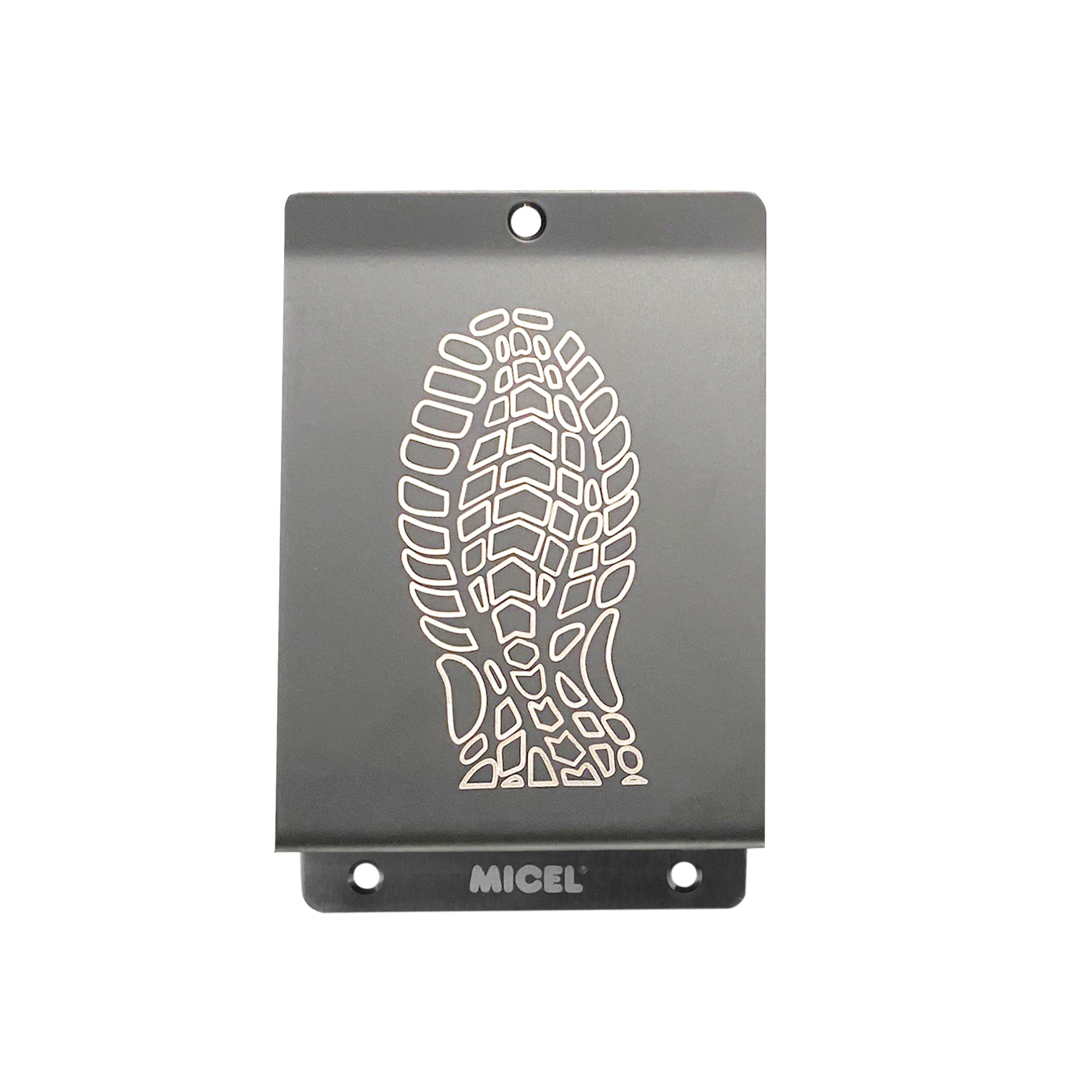 Placa para colocar en puerta de portal o de entrada para poder pisar, empujar y abrir la puerta. Realizado en acero inoxidable y acabado en acero inoxidable