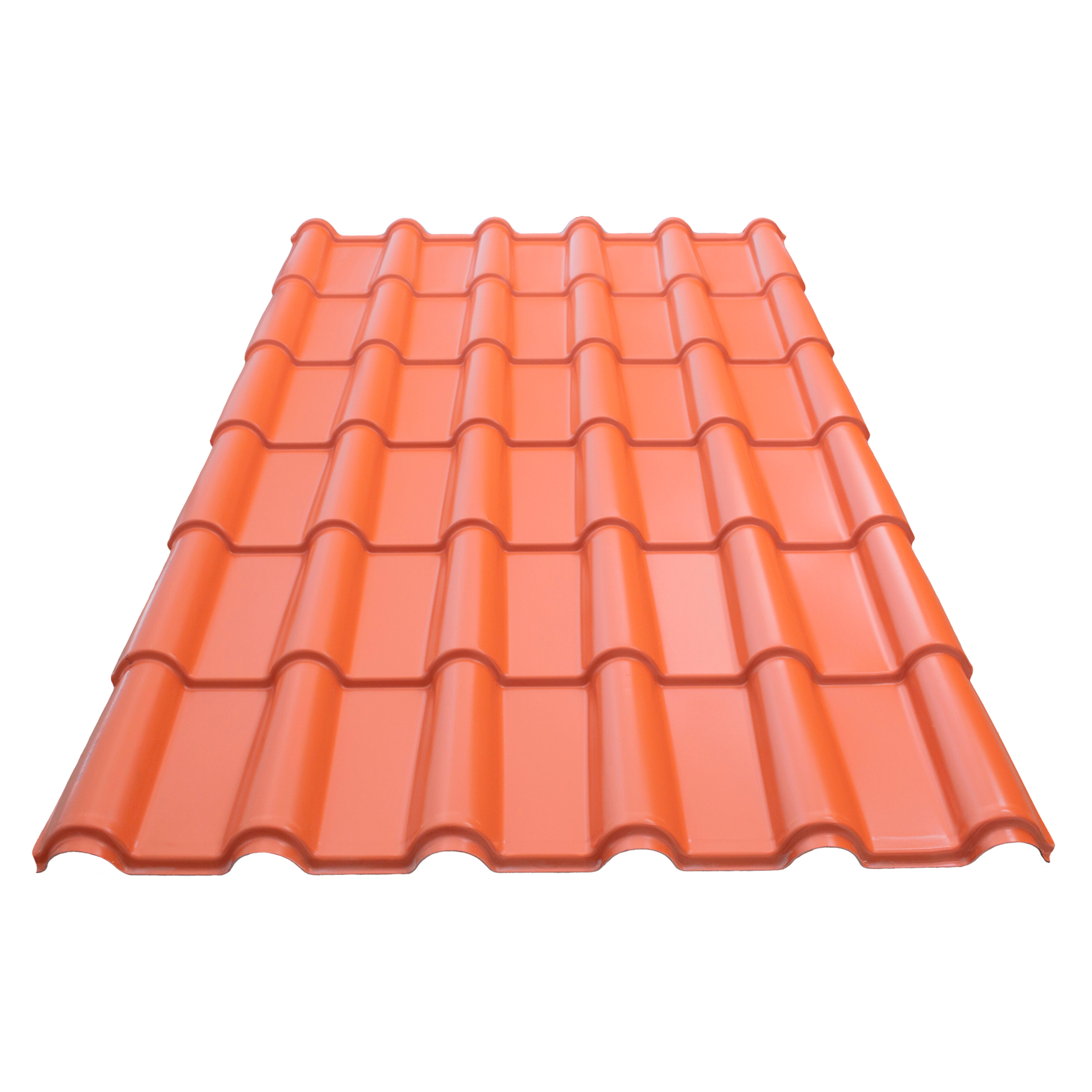 Placa teja romana 1,84x1,17m color terracota acabado imitación teja ideal para cubiertas de edificios residenciales o industriales.
