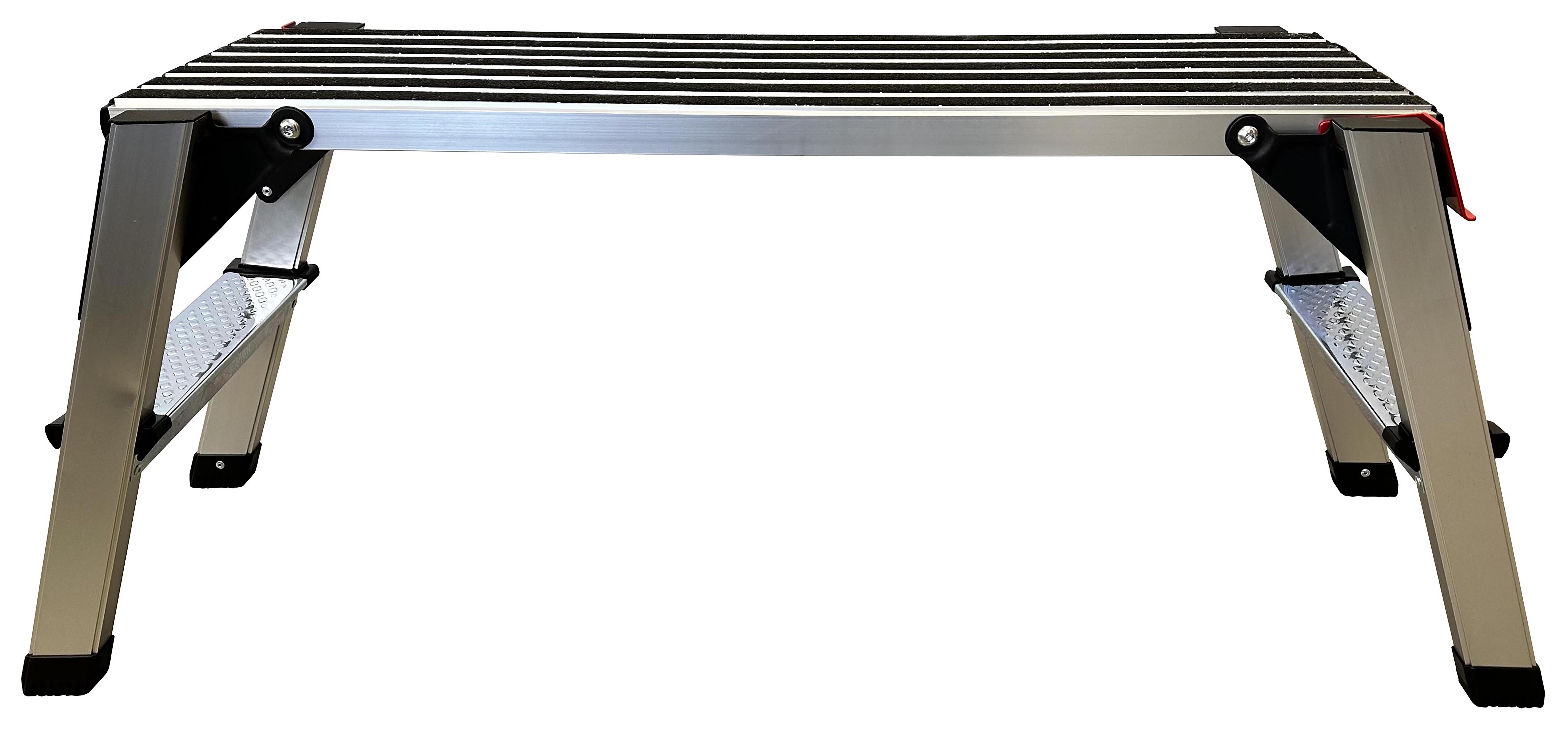 Plataforma trabajo de alumino de 1 peldaño. Carga máxima de 150Kg. Peso 8,3Kg.