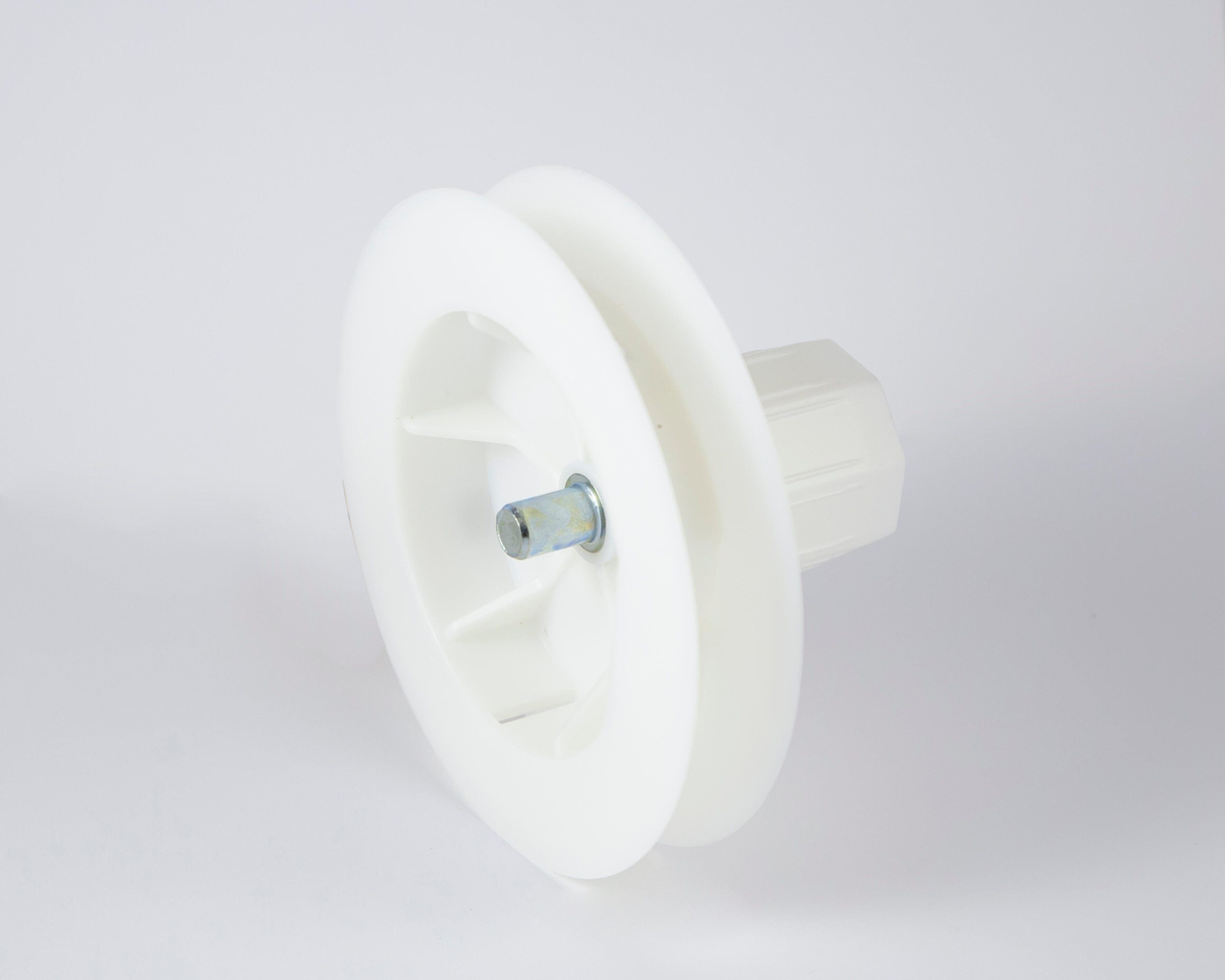 Polea de persiana realizada en PVC compacto 120 con espiga de 10 , para eje de 40 mm y cinta de 18 mm