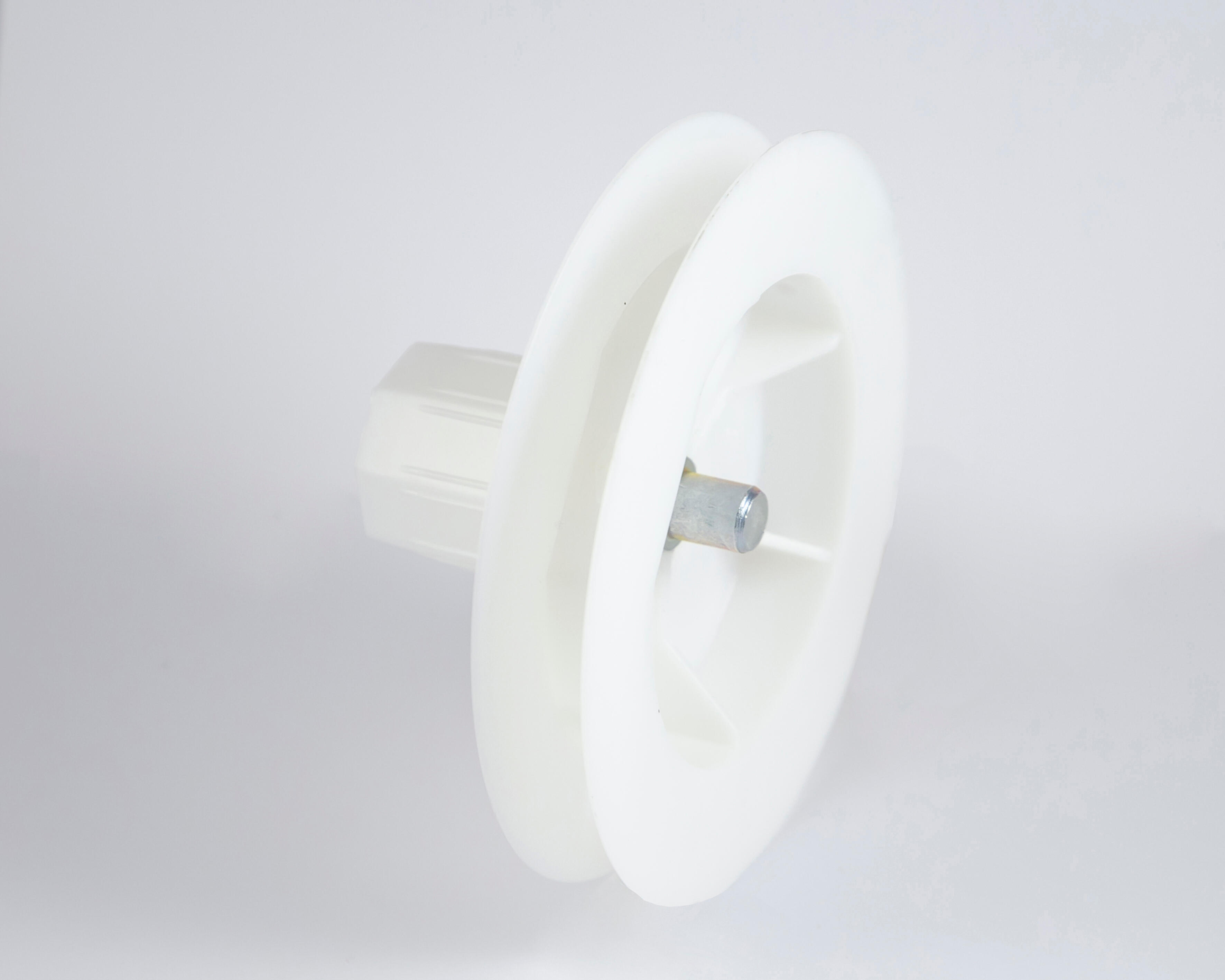 Polea de persiana realizada en PVC compacto 140 con espiga de 12, para eje de 40 mm y cinta de 18 mm