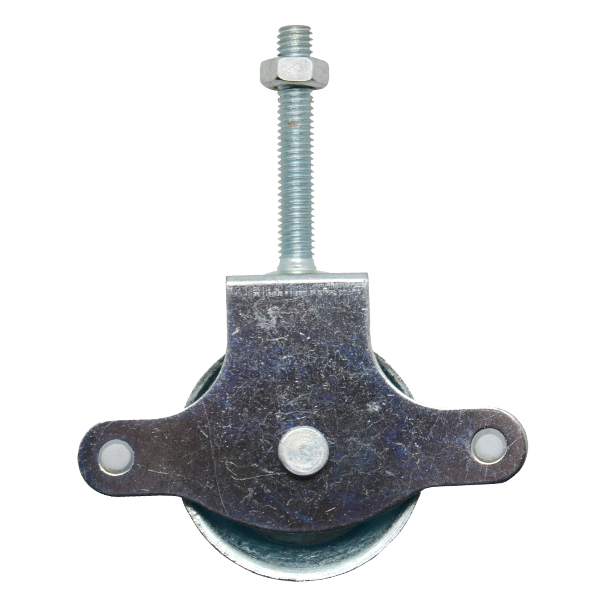 Polea de tender con rueda en acero inoxidable de 40 mm de diámetro y tuerca demétrica 6. Acabado zincado.