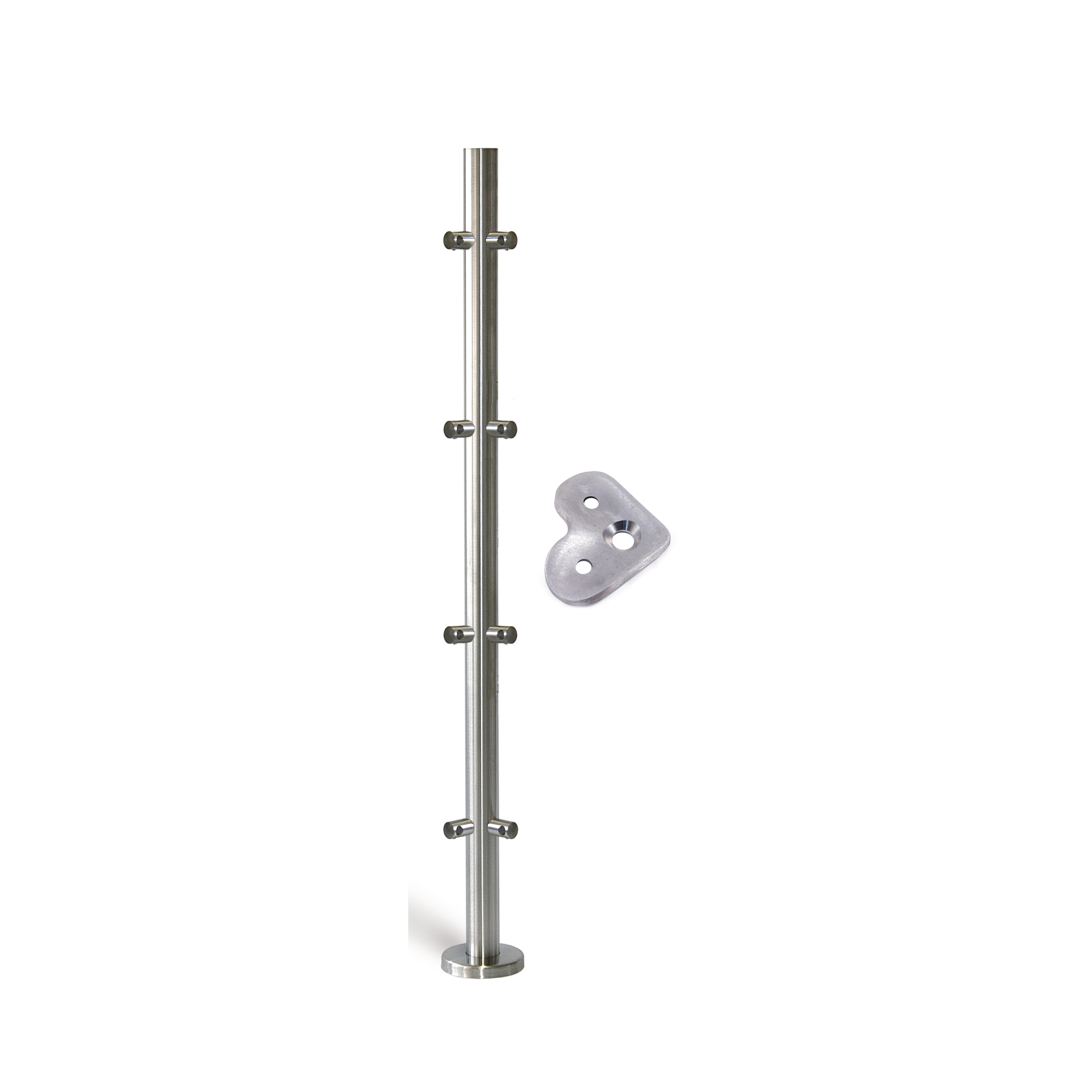 Poste ángulo acero inoxidable para varilla con placa.