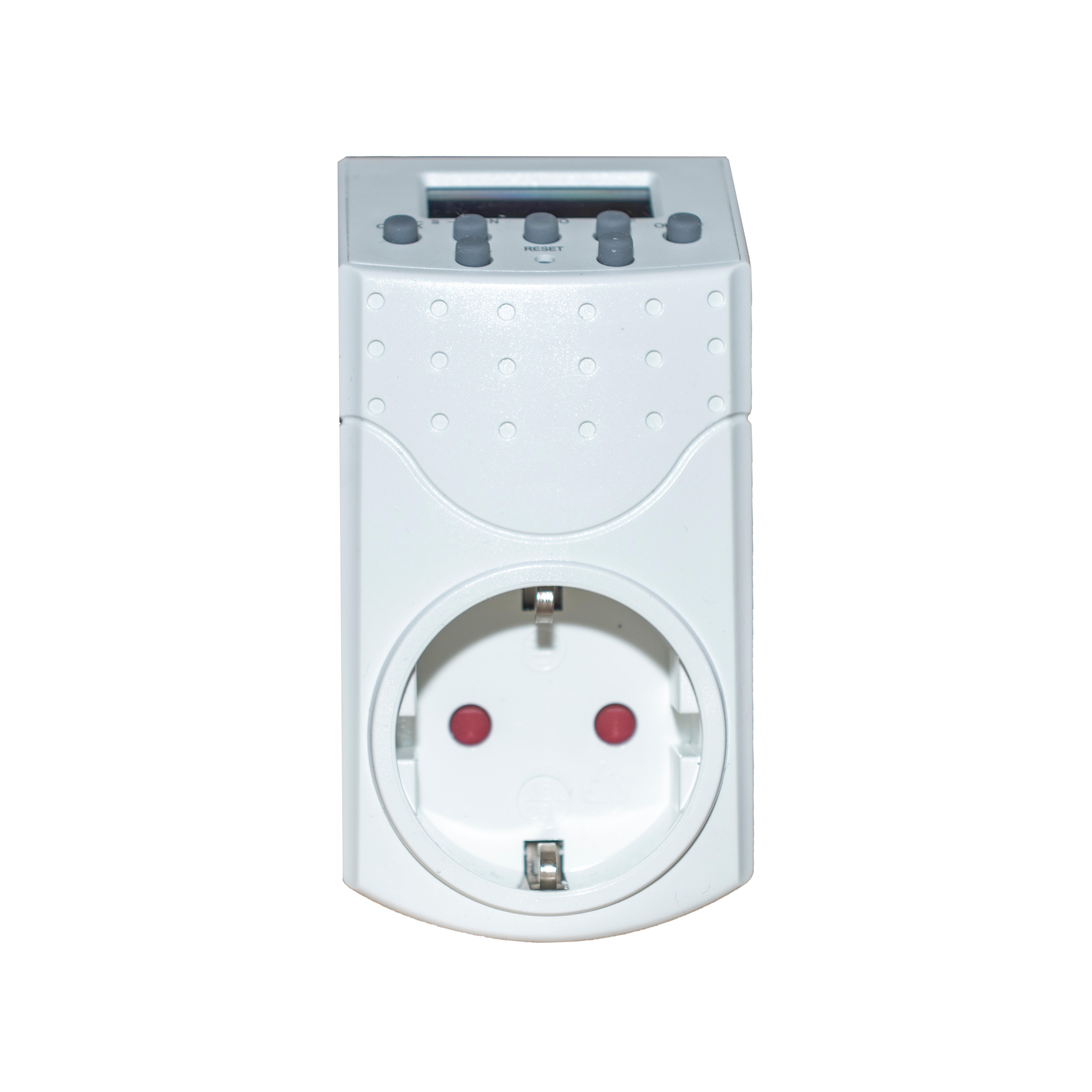 Programador enchufable digital para dispositivos de hasta 1800w con maniobra minima de 1 minuto y memoria para hasta 140 programas semanales de encendido/apagado.
