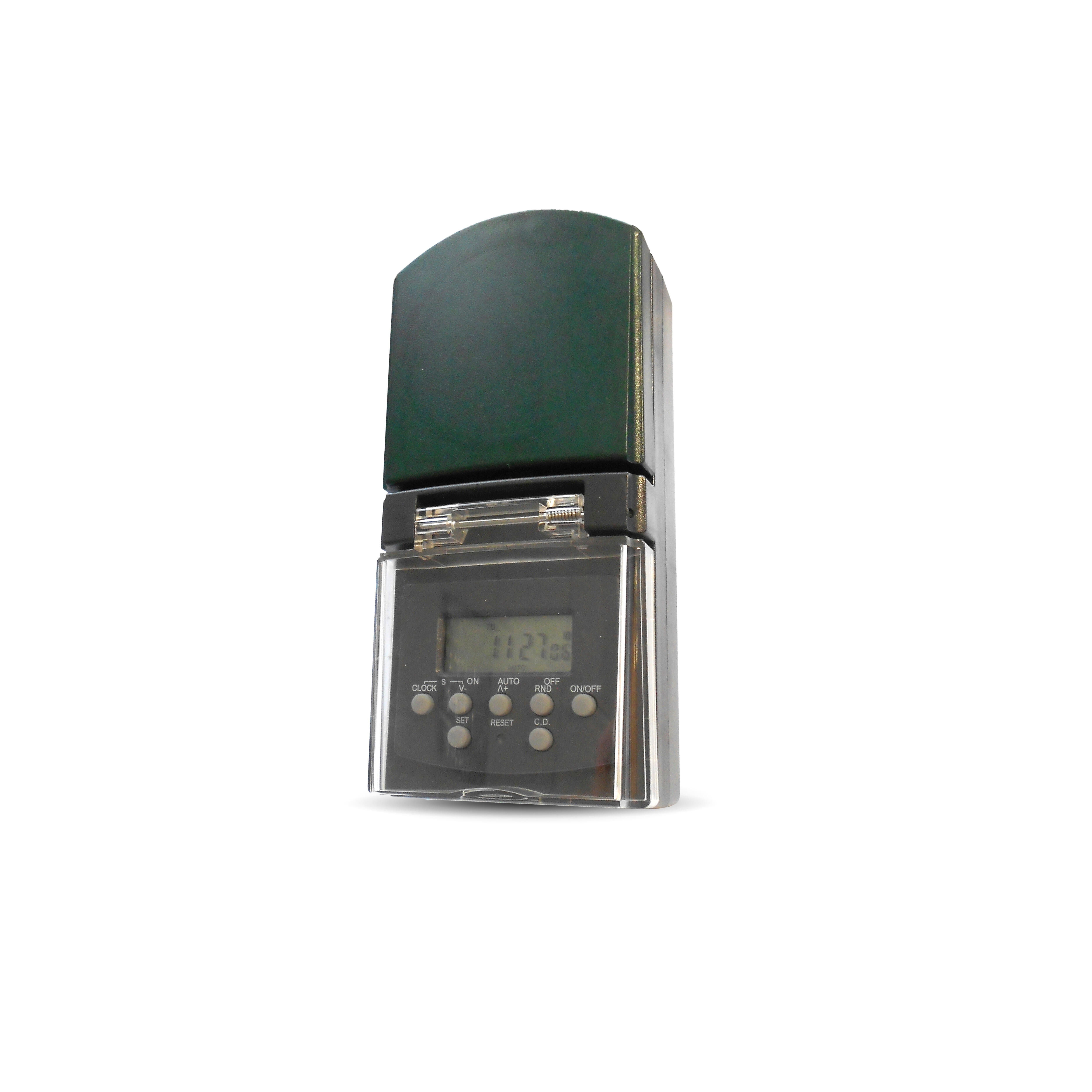 Alimentación 230VAC, 50-60Hz, contacto de 8A/250VAC. Hasta 140 programas semanales de encendido/apagado. Función cuenta atrás y función aleatoria. Programa semanal. Tiempo mínimo de programación: 1 minuto. Tecla para cambio de horario verano/invierno. Interruptor manual ON/OFF/AUTO. Reserva de marcha de 4 meses. Grado de protección IP44. Potencia máxima: 1.800W.