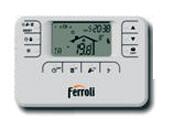 Amplia pantalla LCD Protocolo de comunicación Open Therm con la electrónica de la caldera Control mediante 2 hilos en contacto libre de tensión Acepta ingreso de contacto telefónico Válido para toda la gama de calderas murales Ferroli Con Hilos