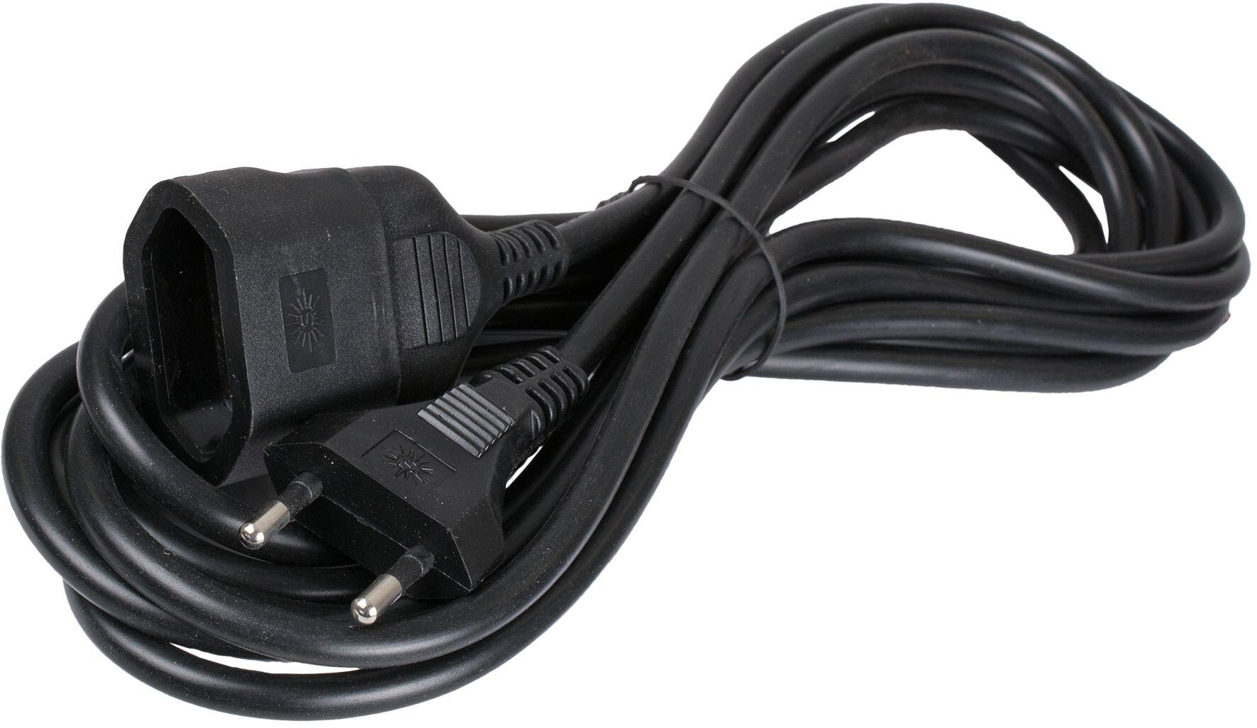 Prolongador de 5m bipolar con toma de tierra lateral 2polos, 10a 250v, con cable h05vv-f, de 2x1mm2. potencia maxima admisible 2300w, con pozo de proteccion, base aerea inyectada, espigas de 4mm de diametro. color negro .