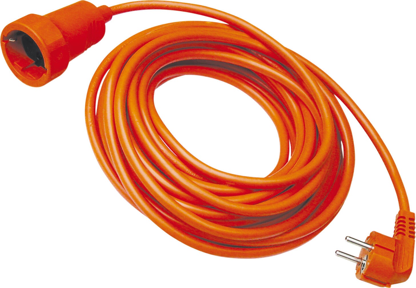 Prolongador de 10m bipolar con toma de tierra lateral 2polos, 16a 250v, con cable h05vv-f, 3g1,5. potencia maxima admisible 3680w, con pozo de proteccion, base aerea inyectada, espigas de 4,8mm de diametro, solo en color naranja.