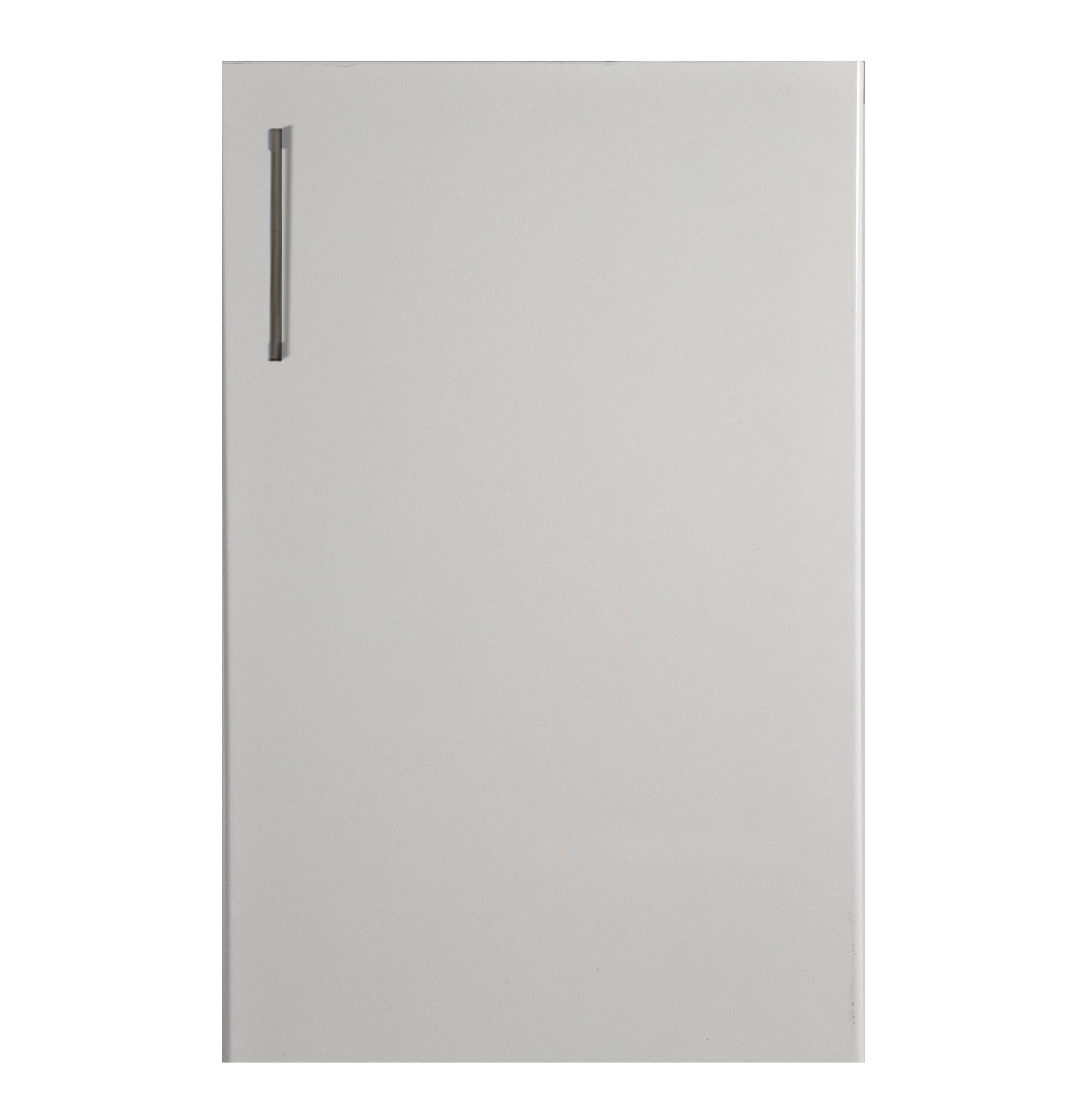 Color blanco. Terminación de la puerta postformado con radio de 2 mm. Contracara: mismo color. Puertas en estratificado HPL(Laminado alta presión) que recubre el tablero de soporte. Gran resistencia a golpes y a rayado. Acabado alto brillo. Soporte: tablero aglomerado de 18 mm de espesor. Adhesivo: cola PUR- poliuretano reactivo, prensado en frío. Sistema AS-Xtreme: resiste hasta 5 veces más al rayado que la melamina. Tirador no incluido.