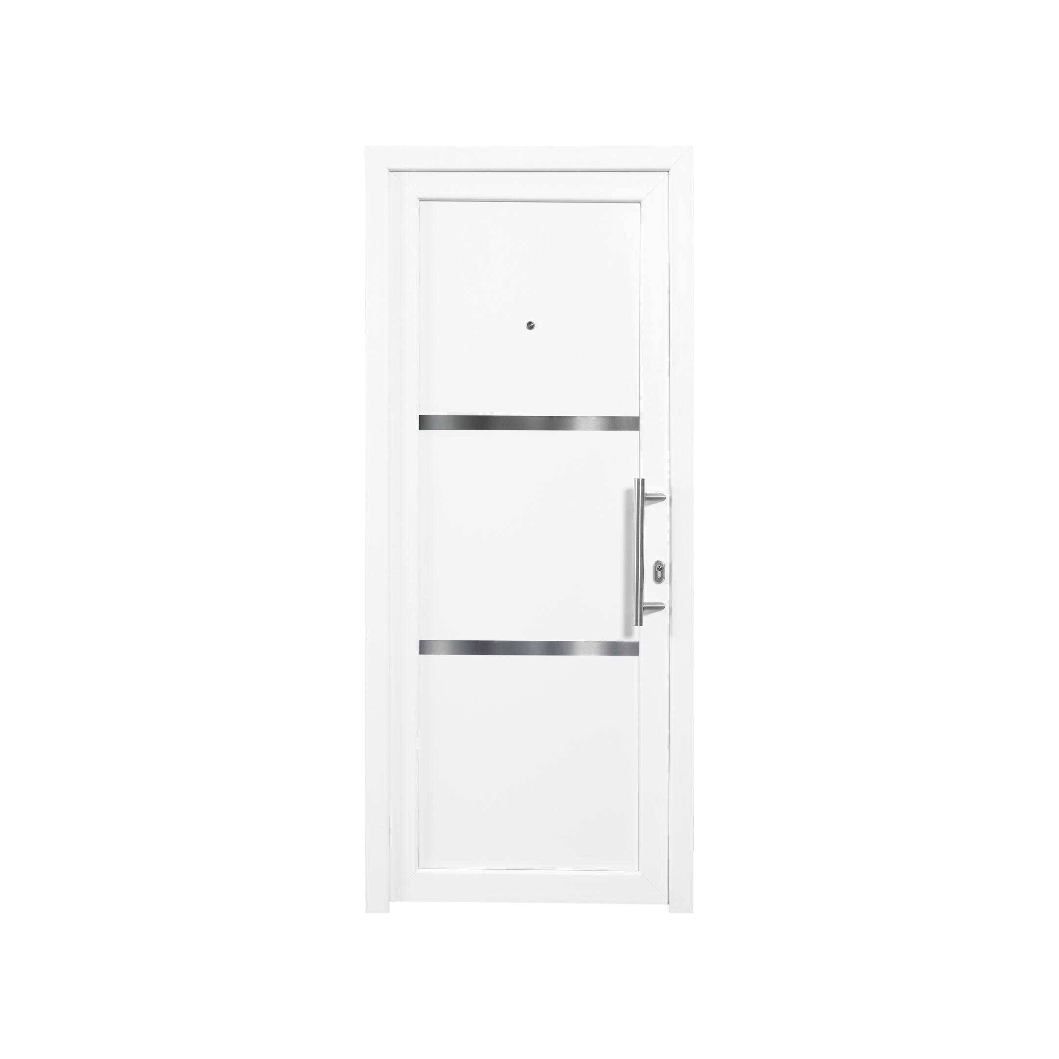 Esta puerta de entrada de PVC combina funcionalidad y estética, brindando seguridad y un acabado elegante para su entrada. Tipo: Puerta de entrada. Marca/Modelo: LINNEAL PRO. Protección: PVC. Dimensiones: 210x90 cm. Ancho de la hoja: 200x81 cm. Uso: Interior/Exterior. Material de la hoja: PVC. Interior de la hoja PVC. Tipo de cerradura: 5 puntos. Acabado: Liso. Color exterior: Blanco. Color interior: Blanco. Ventajas del producto: Esta puerta de entrada de PVC ofrece una excelente durabilidad, resistencia a la intemperie y bajo mantenimiento, lo que la convierte en una opción ideal para su hogar.