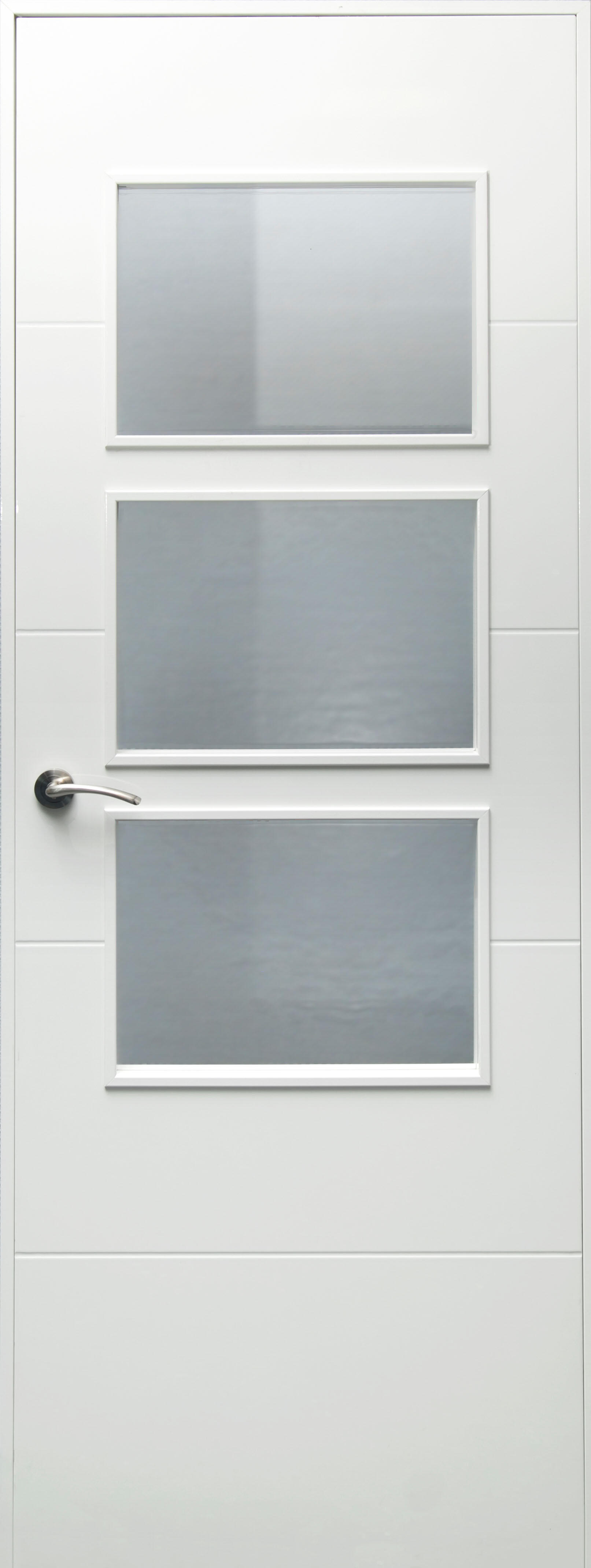 PUERTA INTERIOR EN BLOCK LACADA BLANCA ALTO BRILLO VT5 VIDRIADA 82,5 CM DERECHA