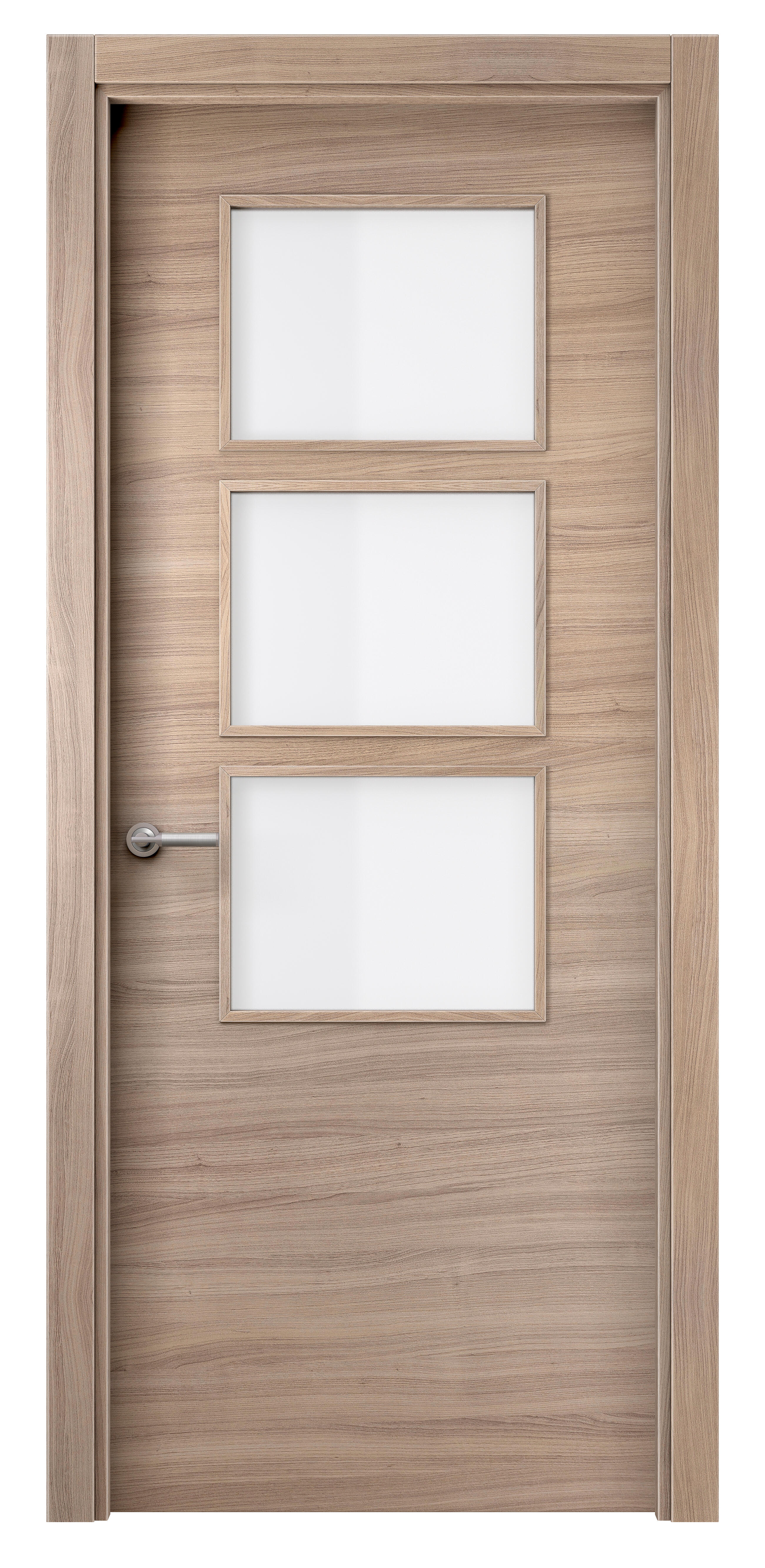 PUERTA INTERIOR EN BLOCK VINILO OLMO LISA VIDRIADA 72,5 CM IZQUIERDA