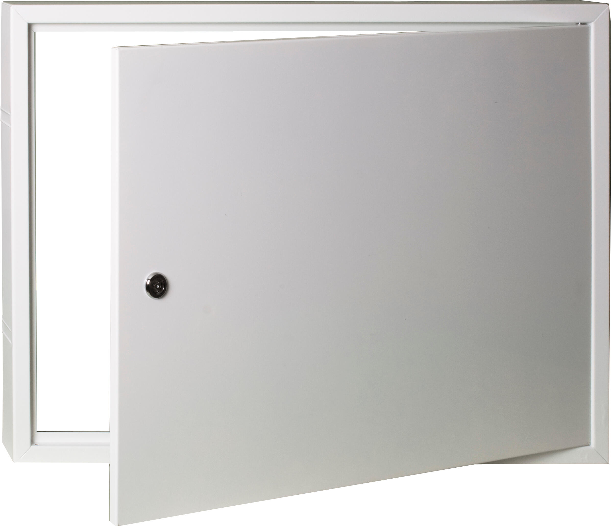 Puerta registro ICT con marco metálico 70x50 cm Solera. Para registro secundario en hueco de obra. Con cerradura y llave metálica, en color blanco. Aplicaciones en interior de vivienda, oficinas, comercios, etc.