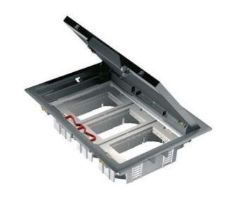 Puesto de trabajo de 3 columnas. Instalacion sobre suelo (en cavidad, reglado o elevado). Dimensiones 72x276x199mm. Serie New Unica de Schneider