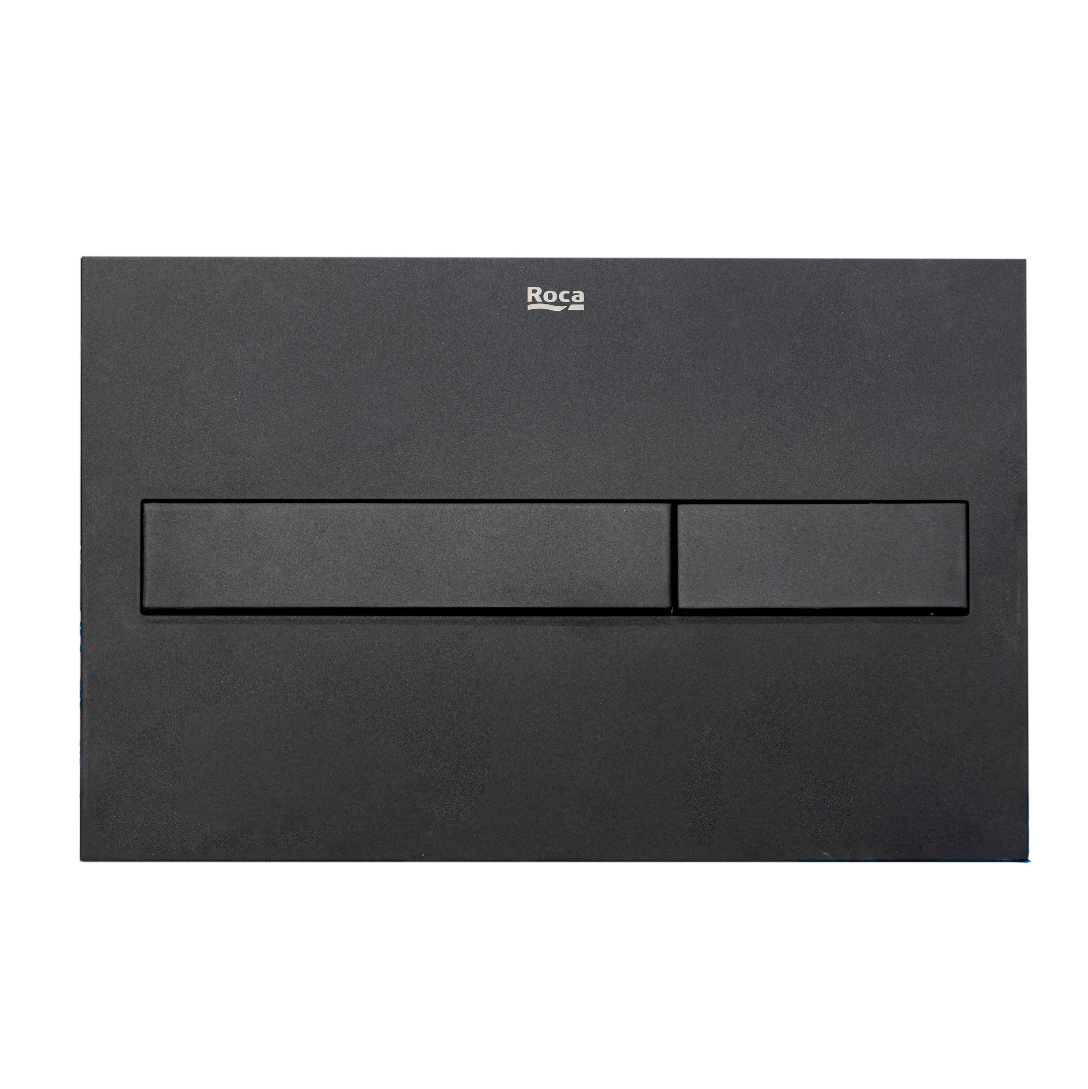 Pulsado Dual de la marca Roca, en acabado negro, está fabricada en ABS resistente y ofrece un diseño elegante y funcional. Su botón doble permite elegir entre media descarga o descarga completa para una gestión eficiente del agua. Compatible con cisternas empotradas Roca, garantiza una instalación sencilla, un uso cómodo y una integración discreta y duradera en el baño
