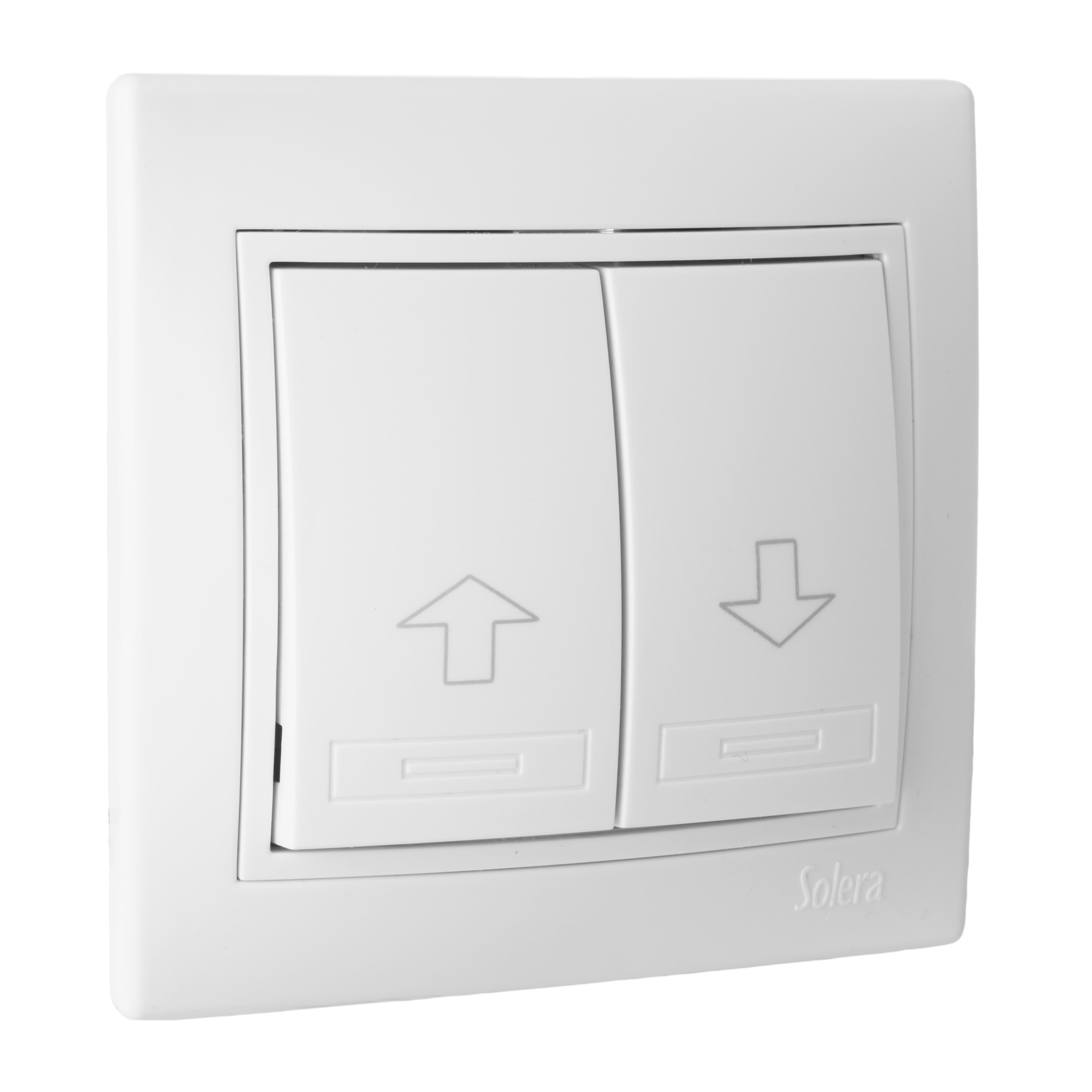Pulsador de persiana 10A 250v. 83x81. Color blanco. mecanismos interruptores de 10A 250v. Tomas de corriente de 16A 250v. Fabricado en policarbonato. Contactos de plata de alto poder de ruptura. Embornamiento por tornillos. Chasis zincado y enlazable de 1mm de espesor. Todos los materiales conductores estan fabricados en cusn94.