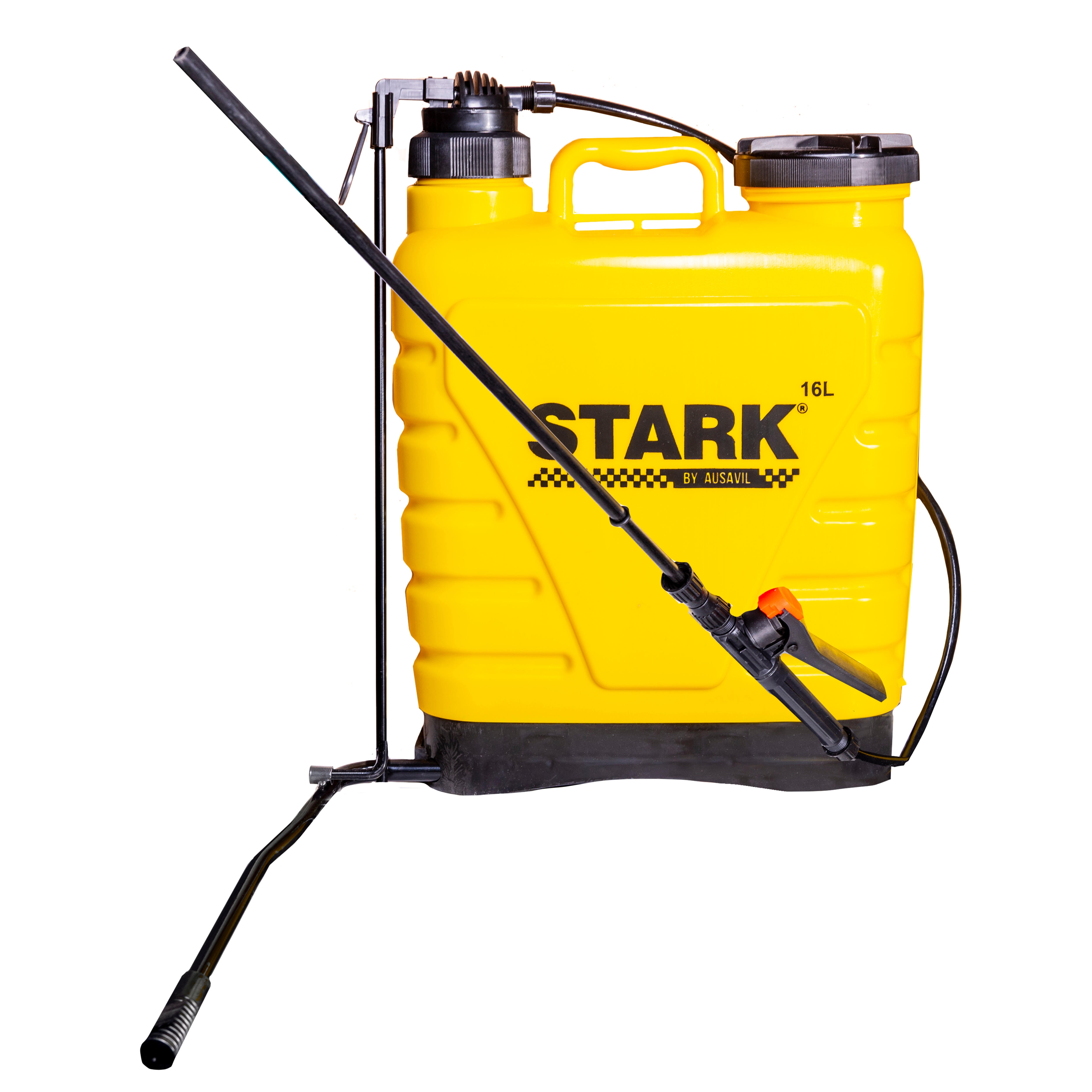 Pulverizador a presión mochila 16L Stark. Pulverizado de agua en diferentes trabajos, tareas de limpieza y fumigación. Chorro regulable. Depósito graduado. Peso 2.5Kg.