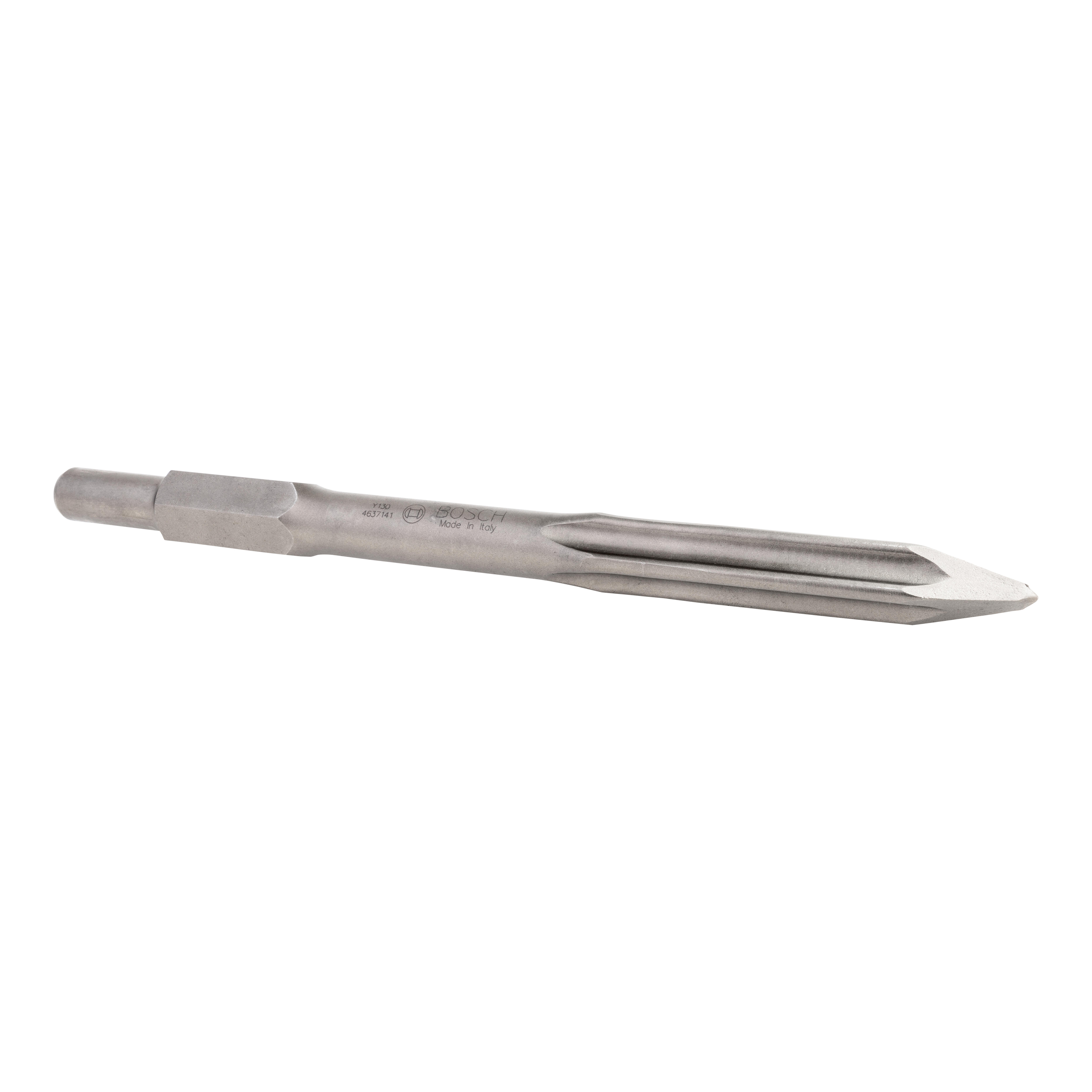 Puntero con inserción hexagonal. Longitud 400mm; autoafilable; El PRO HEX 30-5C es un cincel duradero de uso intensivo para romper hormigón y ladrillos en diferentes estructuras (edificios, carreteras y puentes), realizar trabajos de demolición o excavación para exponer los refuerzos. Su punta con autoafilado en forma de estrella garantiza un rendimiento duradero. Compatible con martillos con vástago de inserción hexagonal de 30 mm.