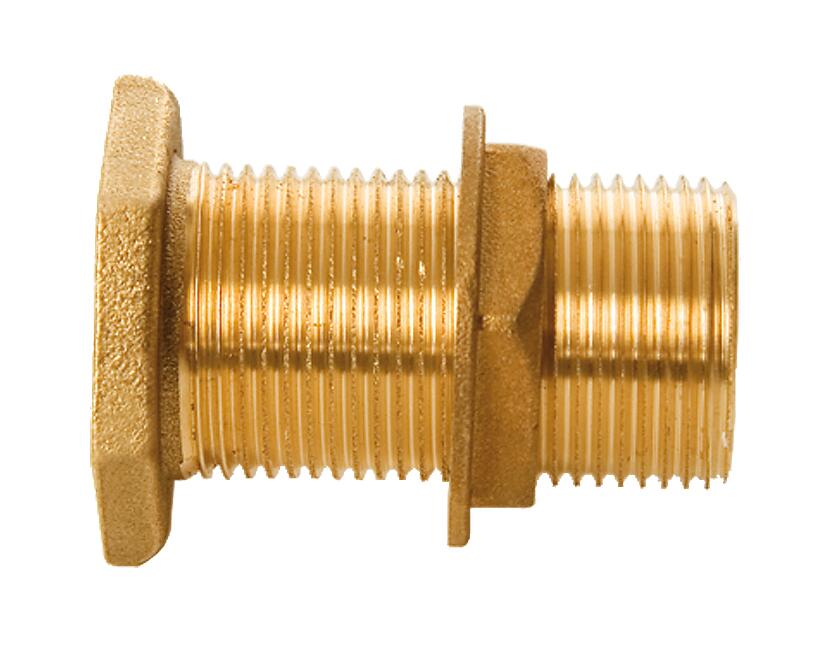 Racor roscado de latón utilizado como pasamuros para el suministro de agua a un tanque o depósito. •Diámetro Ø3/4".