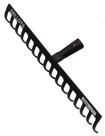 Rastrillo con cabeza de acero. 16 puas. Pintura epoxi para evitar la oxidación. Dimensiones: 100 x 430 x 95mm. Peso: 667gr. Para limpiar, igualar, preparar la tierra y cubrir los sembrados con facilidad con el rastrillo de intesidad media.