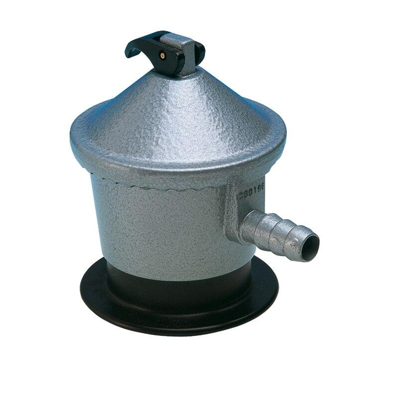 Regulador para bombonas de gas diseñado para su uso con butano, propano o una mezcla de ambos (GLP). - Rango de presiones de entrada: 0.3 hasta 16bar, con un flujo máximo garantizado de 2.0 kg gas/h - Producto homologado CE de acuerdo con la norma EN12864 - Presión de salida: 30mbar - Conexión de entrada: Válvula de 35mm, norma EN12864 - Conexión de salida: Boquilla diámetro 8mm interior Norma EN12864 - Este dispositivo asegura el cierre del regulador en caso de rotura o desconexión accidental del tubo.