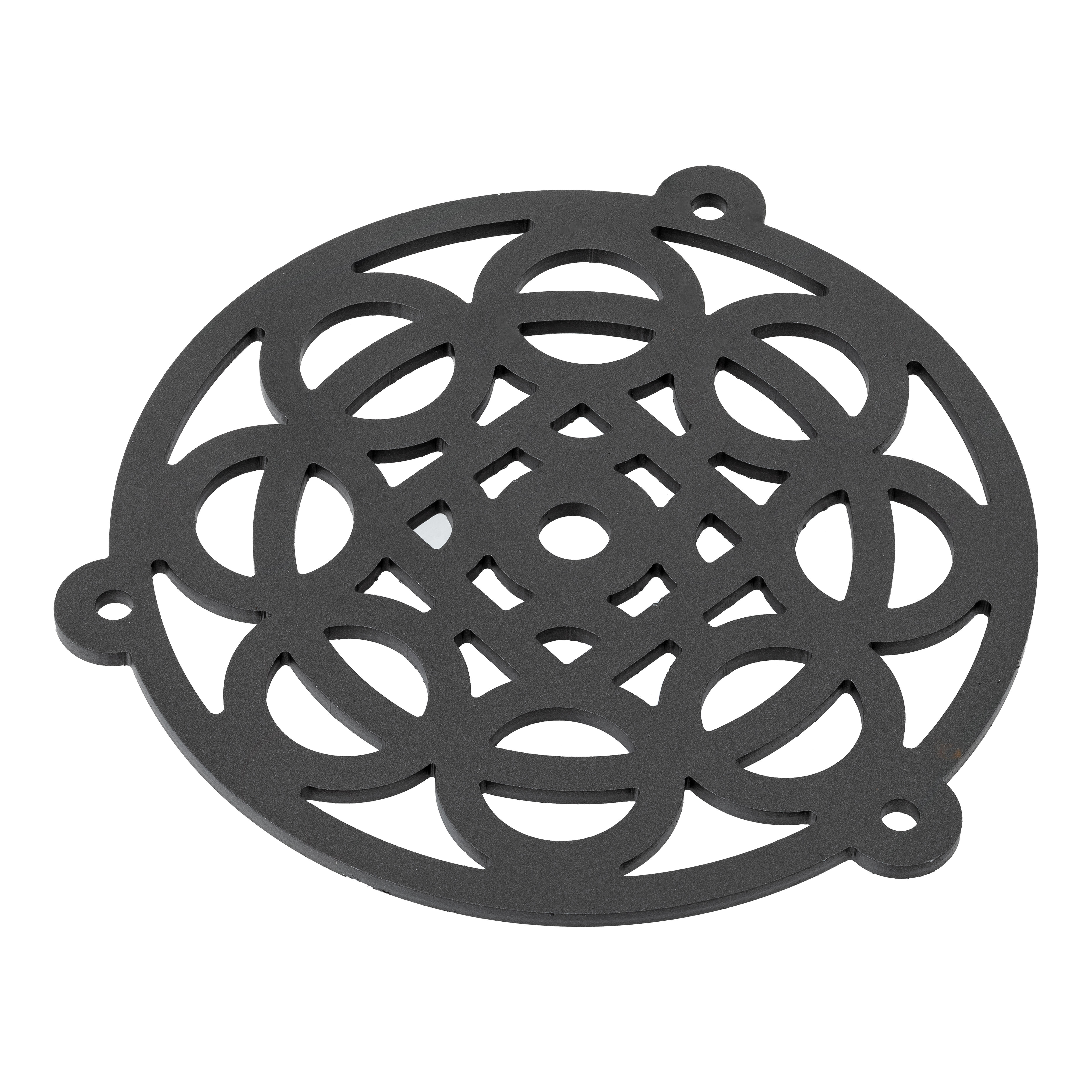 Rejilla de hierro redonda. Diámetro: 13 cm. Grueso: 3 mm. Negro.