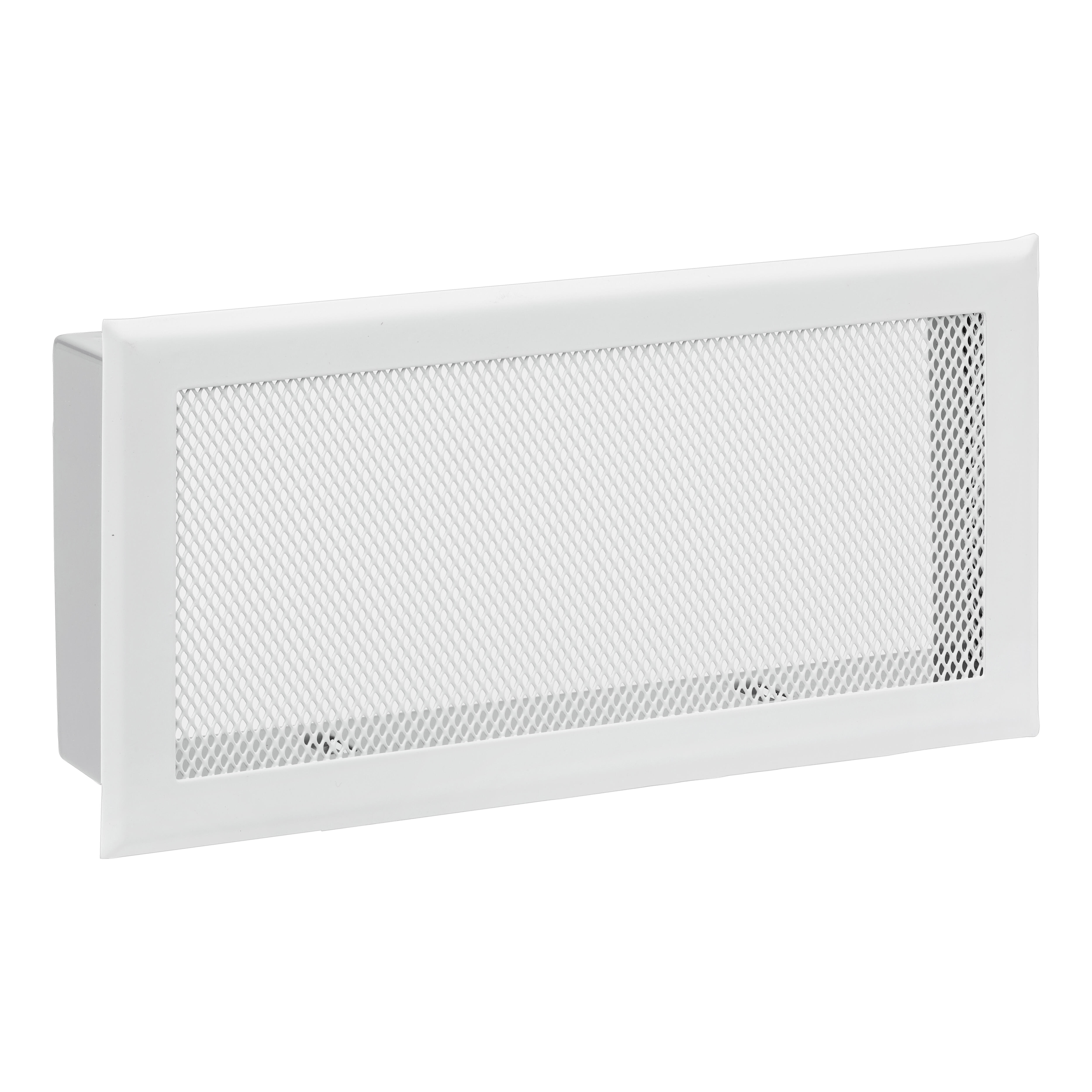 Rejilla de ventilación en metal expandido. Disponibles diferentes colores y medidas para adaptarse a las necesidades de tu vivienda. Rectangular con premarco. 30 x 15 cm. Blanca.