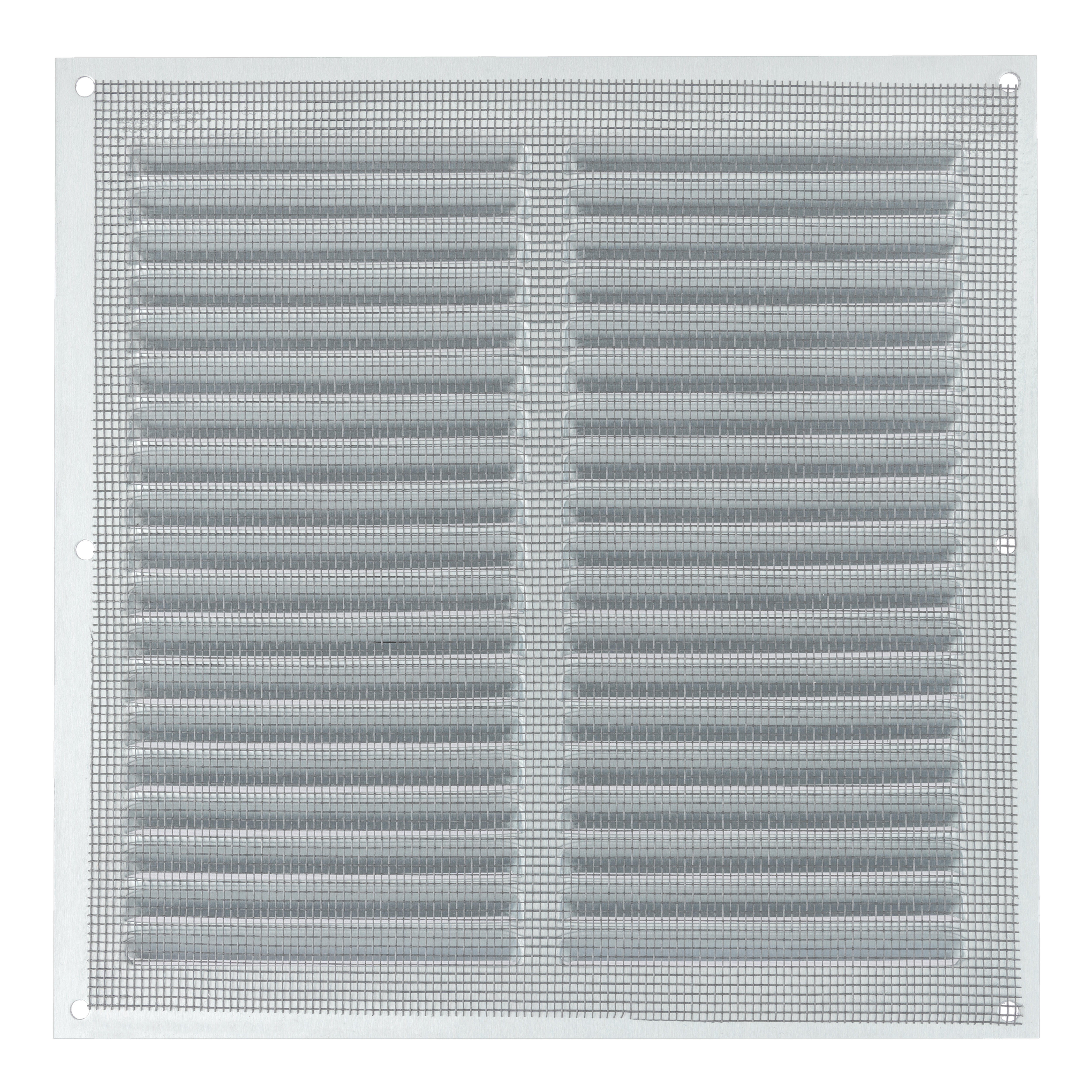 Rejilla de ventilación para sobreponer con mosquitera, realizada en aluminio bruto. Espesor 0.8 mm Color: Gris Plata