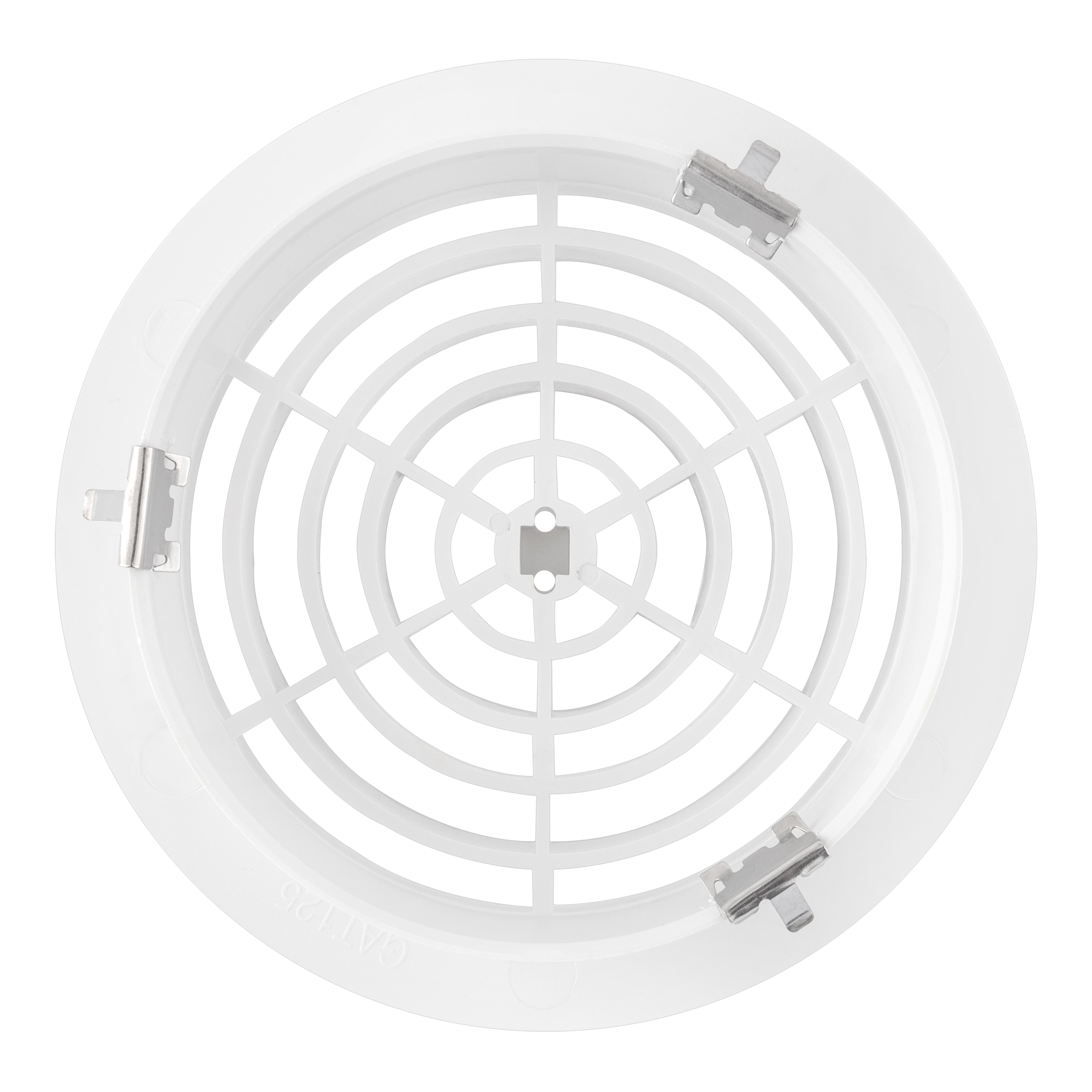 Rejilla de ventilación empotrable realizada en plástico blanco para tubo GAT de 125 mm de diámetro