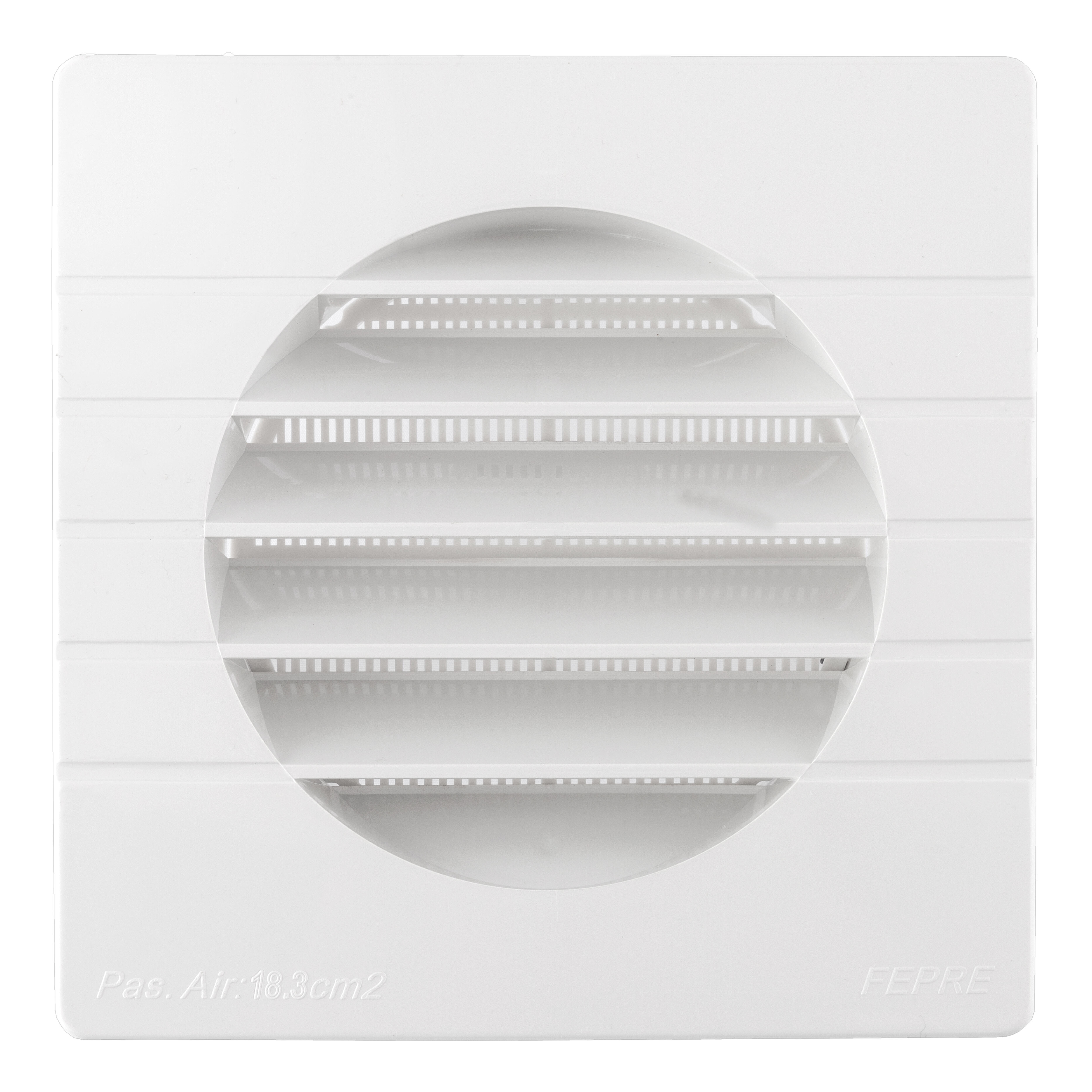 Rejilla de ventilación empotrable con mosquitera realizada en plástico blanco para exterior. Medida 14 x 14 cm