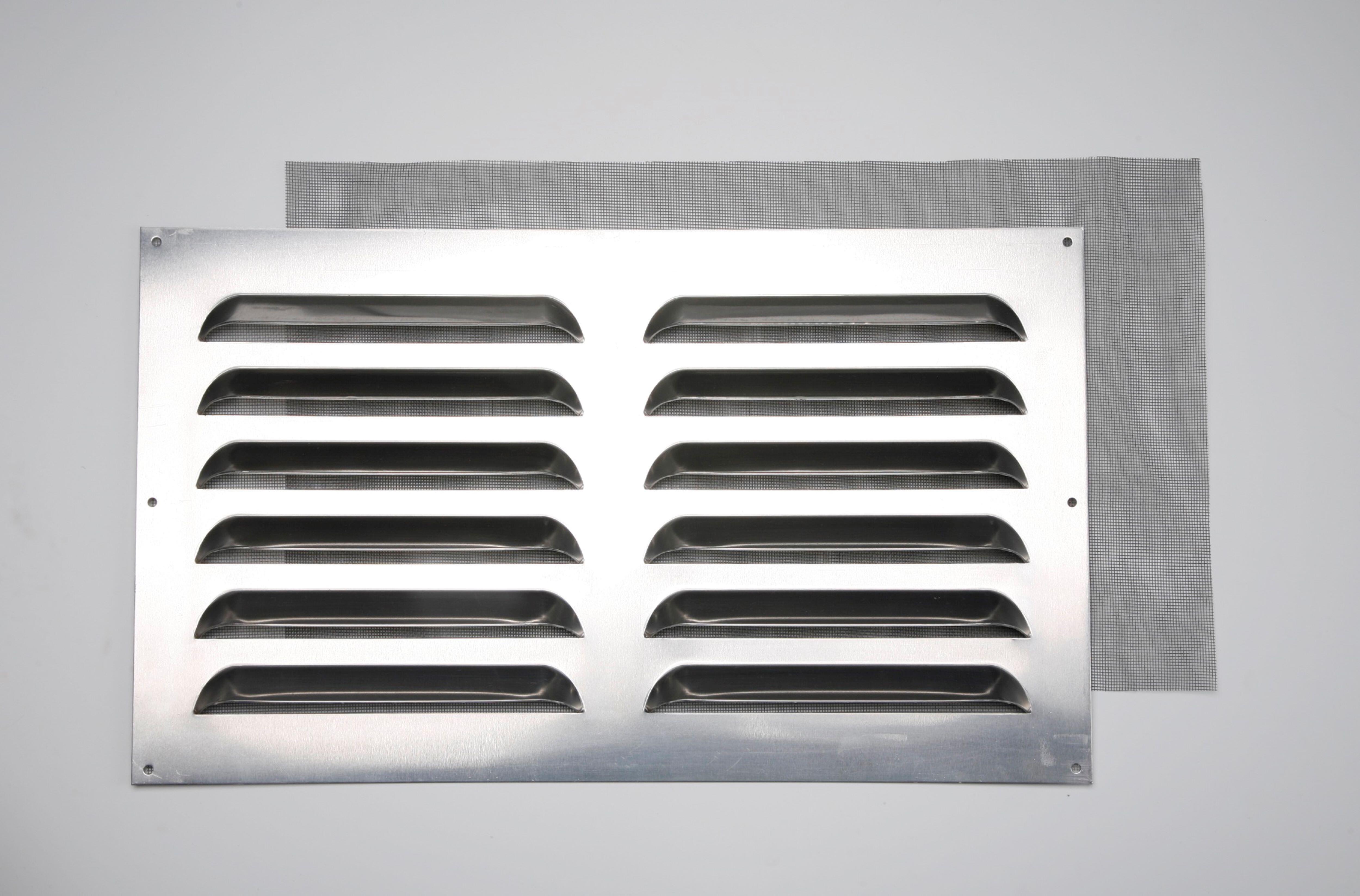 Rejilla reforzada con mosquitera sin borde realizada en aluminio de dimensiones 30 x 50 cm espesor a 1.5 cm. Color aluminio. Paso de aire 324 cm2. Especial gas. Regulable Especial gas Mosquitera ALUMINIO30 x 50 CM 1,5 cm ----------Aluminio----------324cm2 N