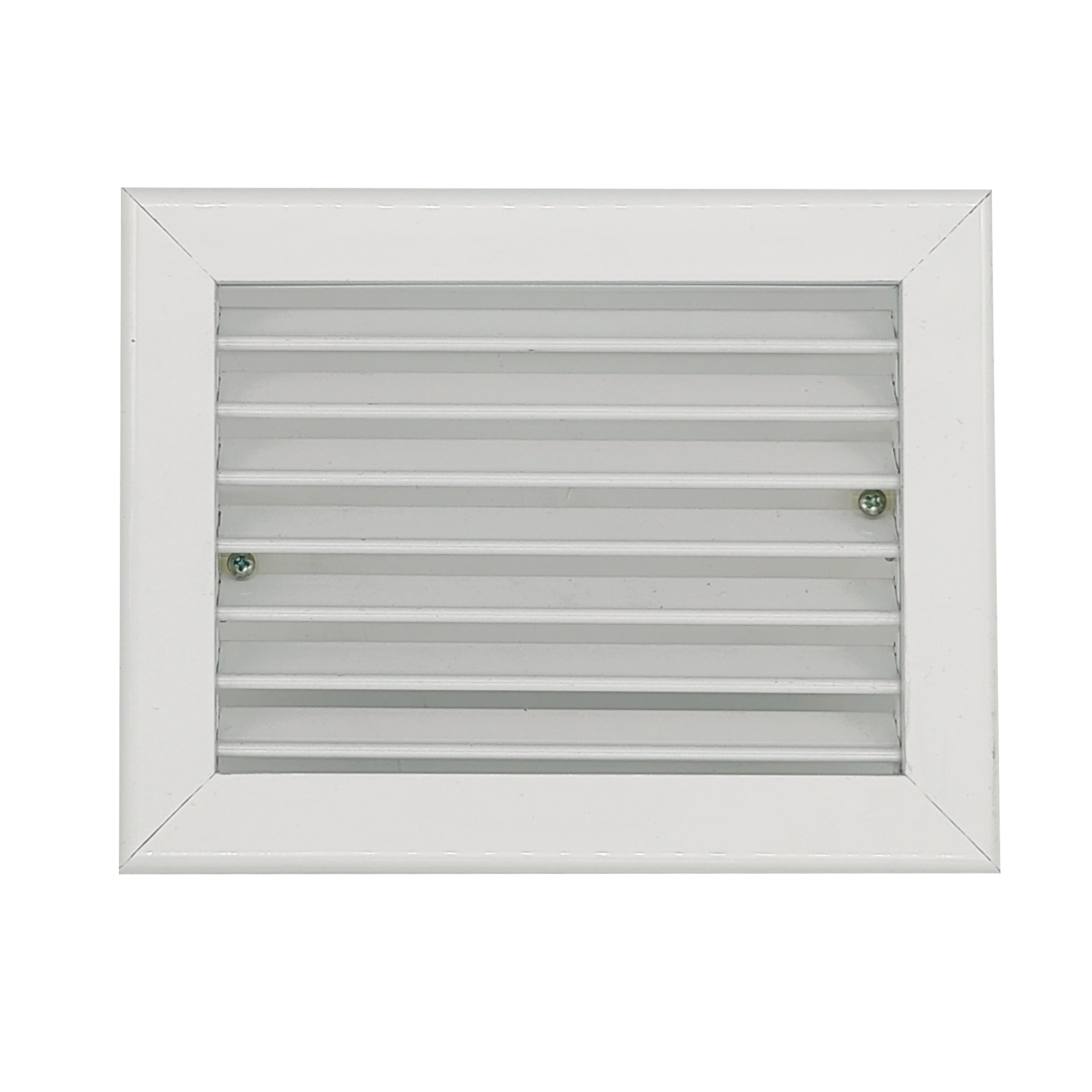 Rejilla de retorno de aluminio anodizado. Lamas horizontales fijas a 45º. Fijación para empotrar. Necesidad de marco de montaje según dimensiones (no incluidos)