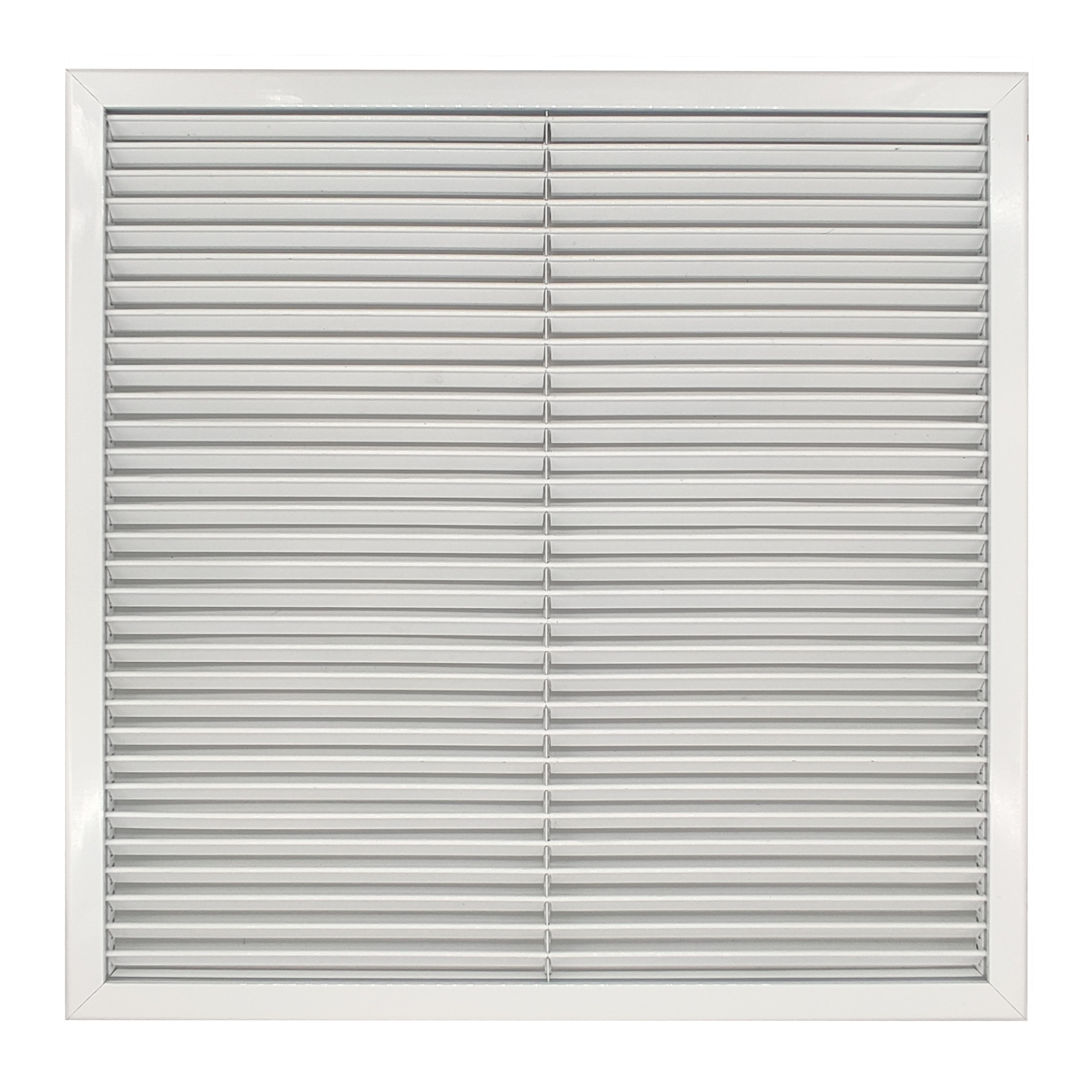 Rejilla de retorno de aluminio anodizado. Lamas horizontales fijas a 45º. Fijación mediante garras o clips. Necesidad de marco de montaje según dimensiones (no incluidos)