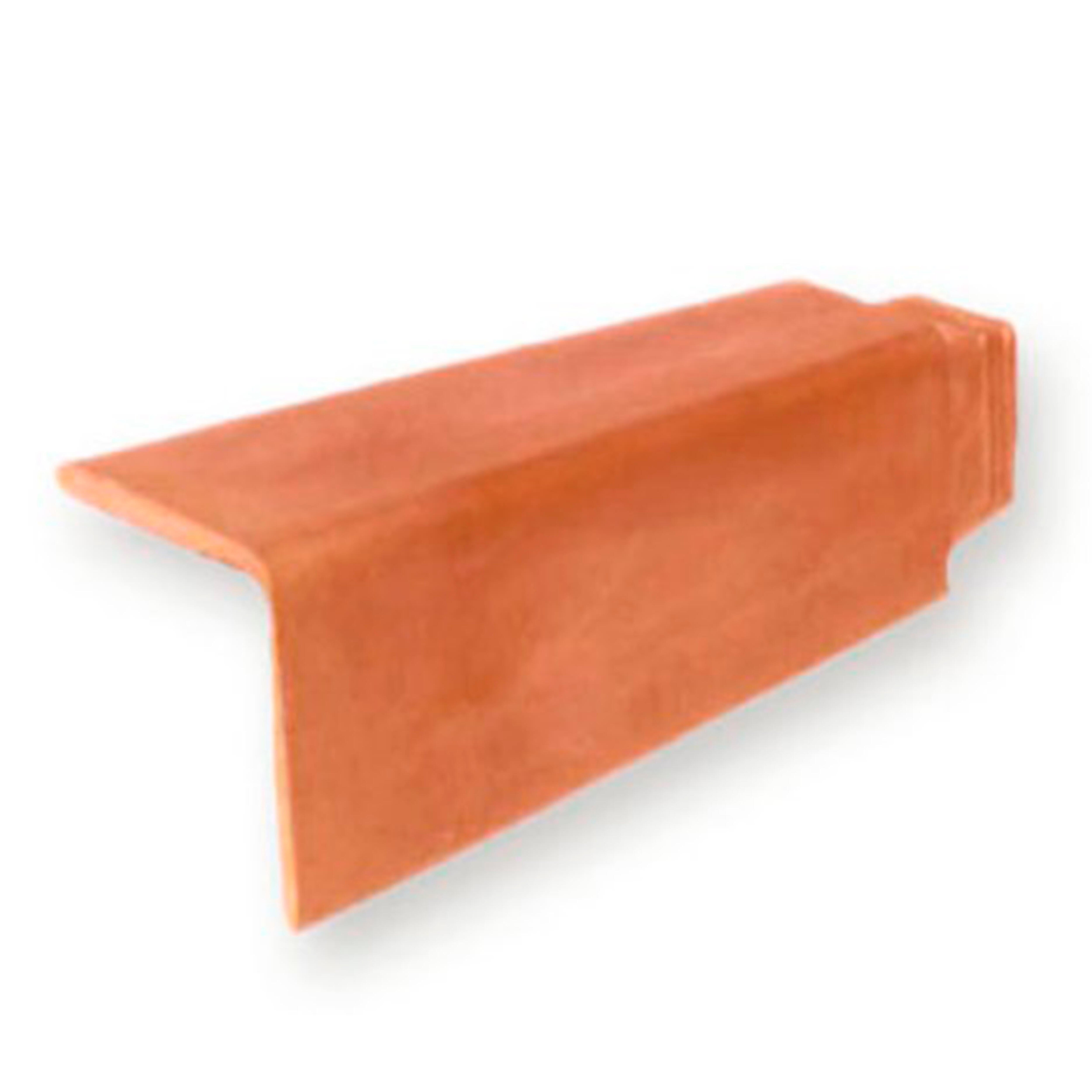 Remate angular para teja Meridional de color rojo. Pieza de cerámica para el remate lateral a lo largo de la línea del faldón. No solo da lugar a una estética de tejado "bien rematado" sino que protege la zona del viento y de la entrada de agua. Mejora la estanqueidad y protege al faldón de los agentes atmosféricos.