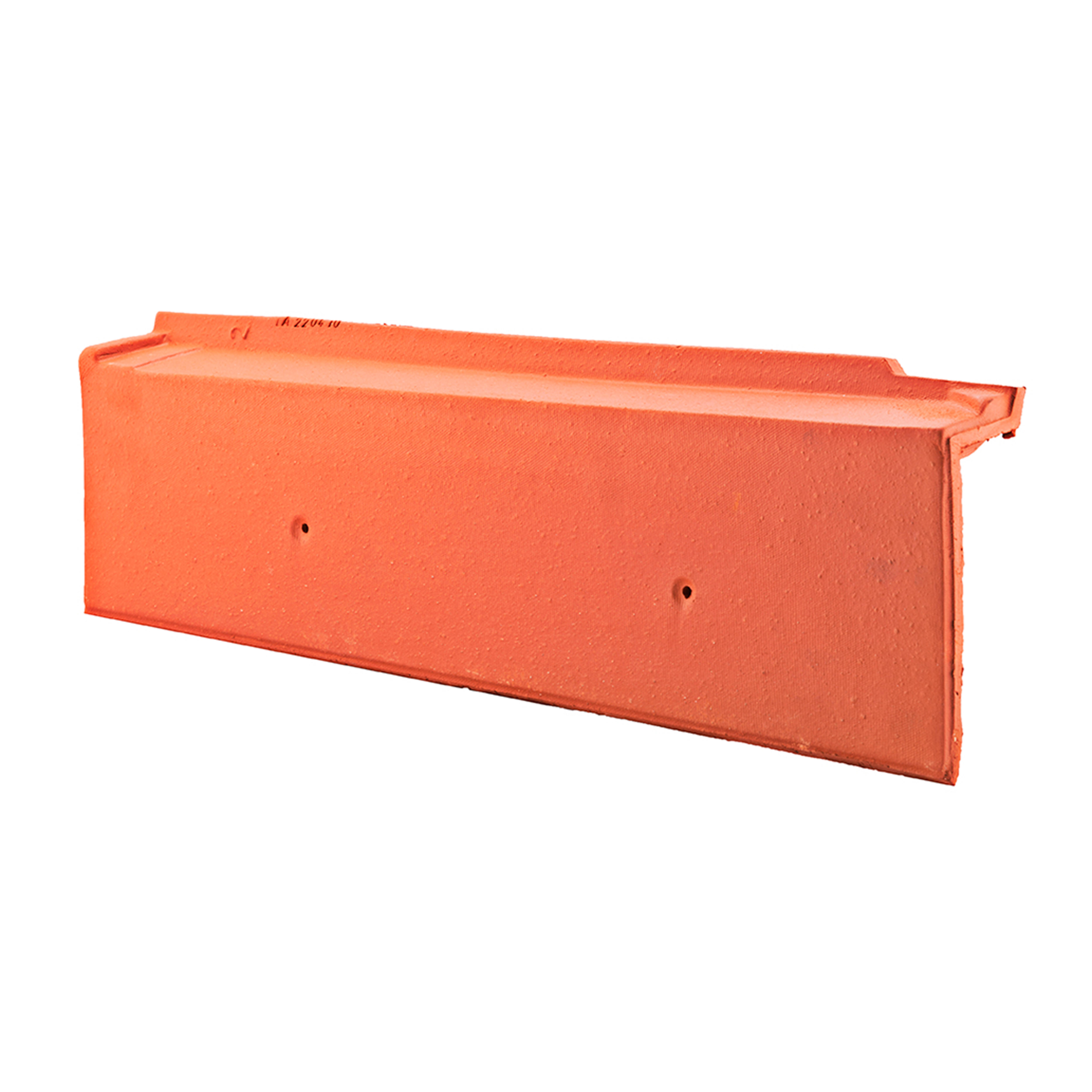 Pieza cerámica de arcilla cocida en acabado color rojo, para remate derecho de las líneas de borde del hastial para evitar la entrada de agua y viento