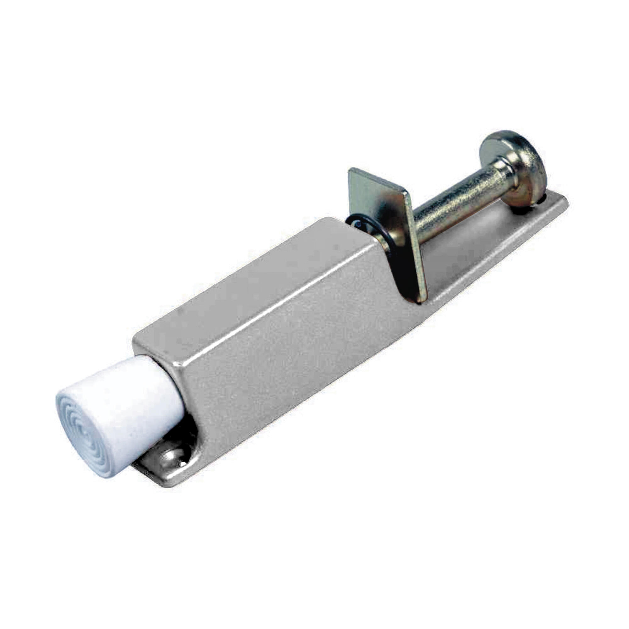Retenedor pie pequeño para puertas ligeras de hata 25 kg con acabado color plata
