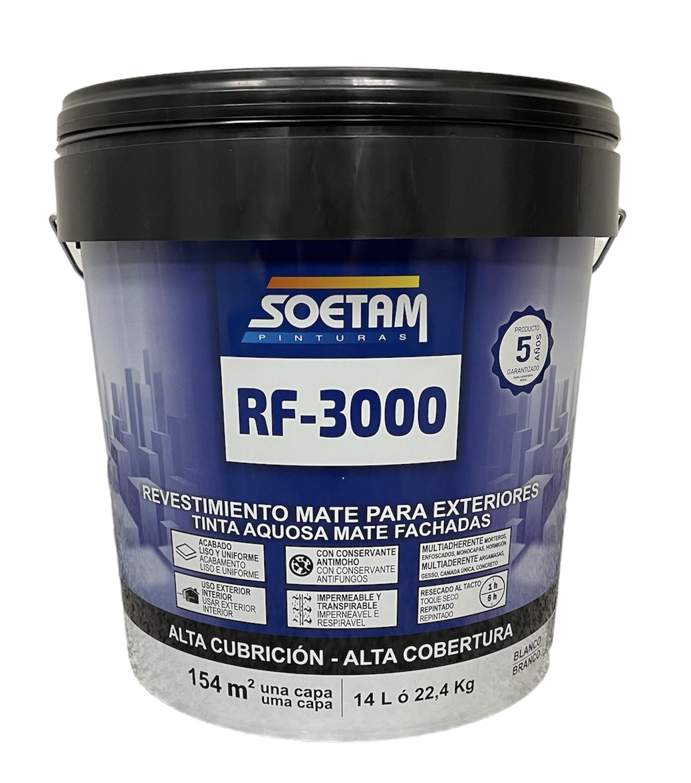 Pintura para fachadas marfil con acabado mate, 14l, RF-3000. Uso exterior. Rendimiento: 9 m2/l. Para el recubrimiento en paramentos verticales como capa de acabado. Con aditivos conservantes frente al moho.